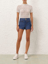 The Railway Blue Wylie Denim Shorts are a chic and versatile addition to any summer wardrobe. Crafted from premium denim, these high-waisted shorts feature a button closure and intricate rope detailing on the front pockets for a unique touch. Ideal for pairing with casual tops or blouses, these shorts offer a stylish, laid-back look for warm days.