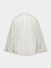 Crafted from airy, lightweight ramie, the Ascension Tunic by Zimmermann embodies effortless femininity. In an elegant cream hue, this long-sleeved design features a flattering neckline and a delicate lace yoke that lends a touch of romantic refinement. The soft, breathable fabric drapes gracefully, making it the perfect transitional piece for refined daywear or resort-ready styling.