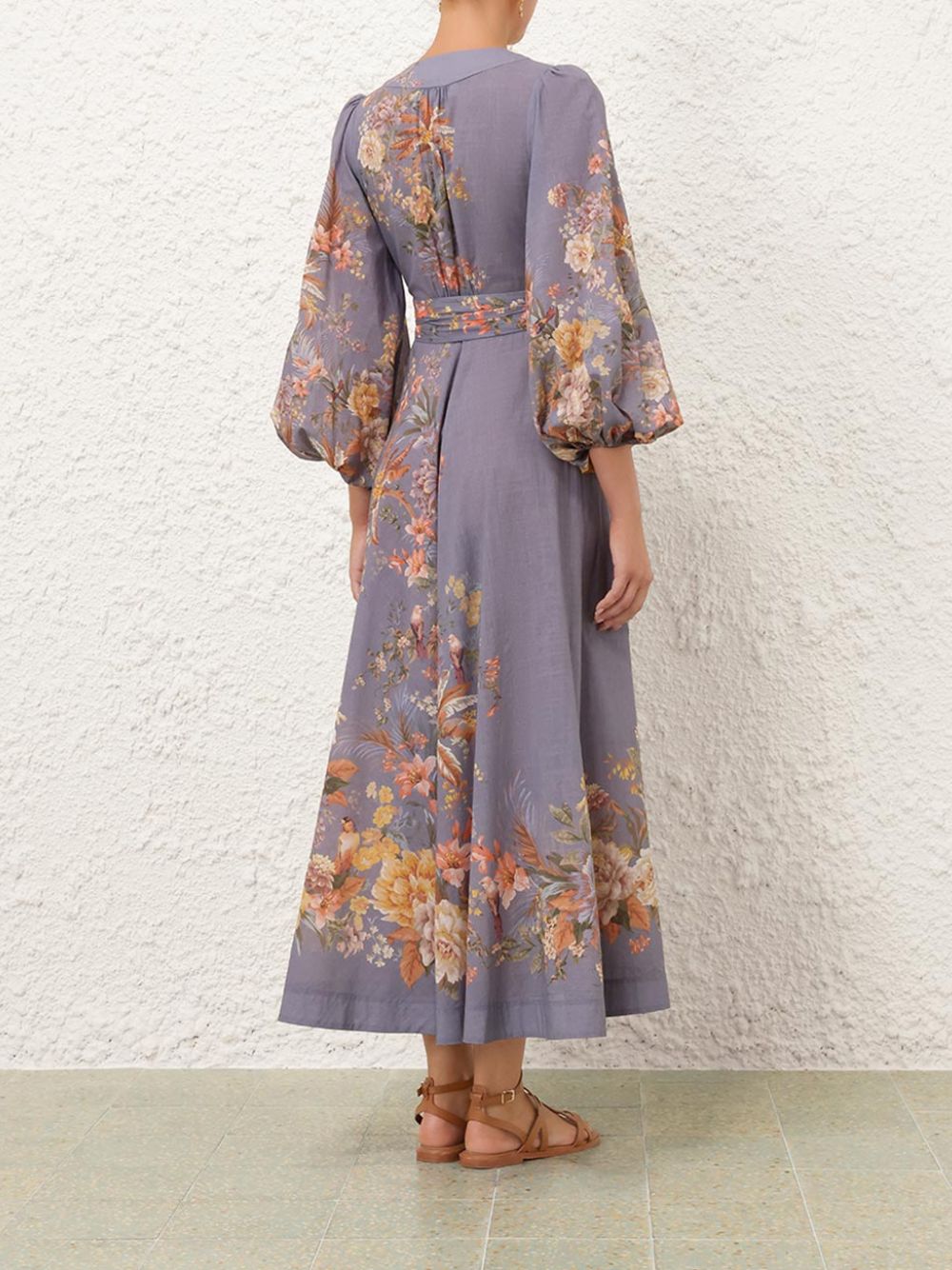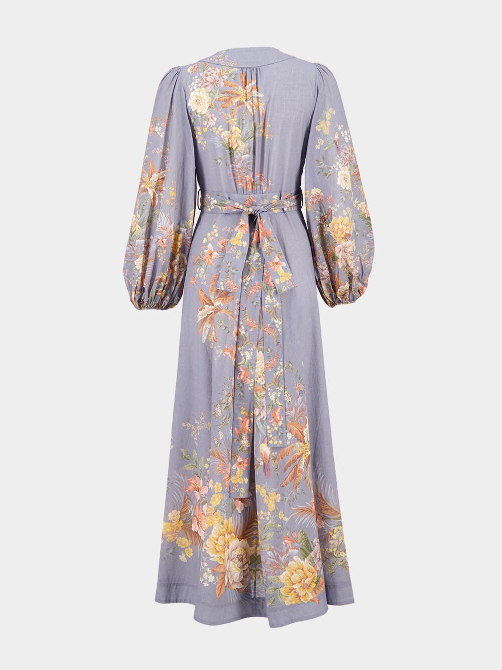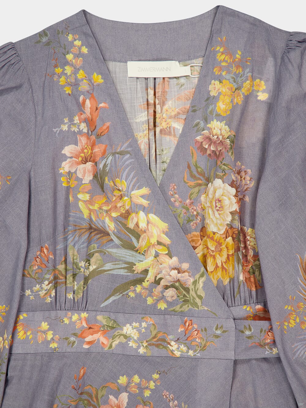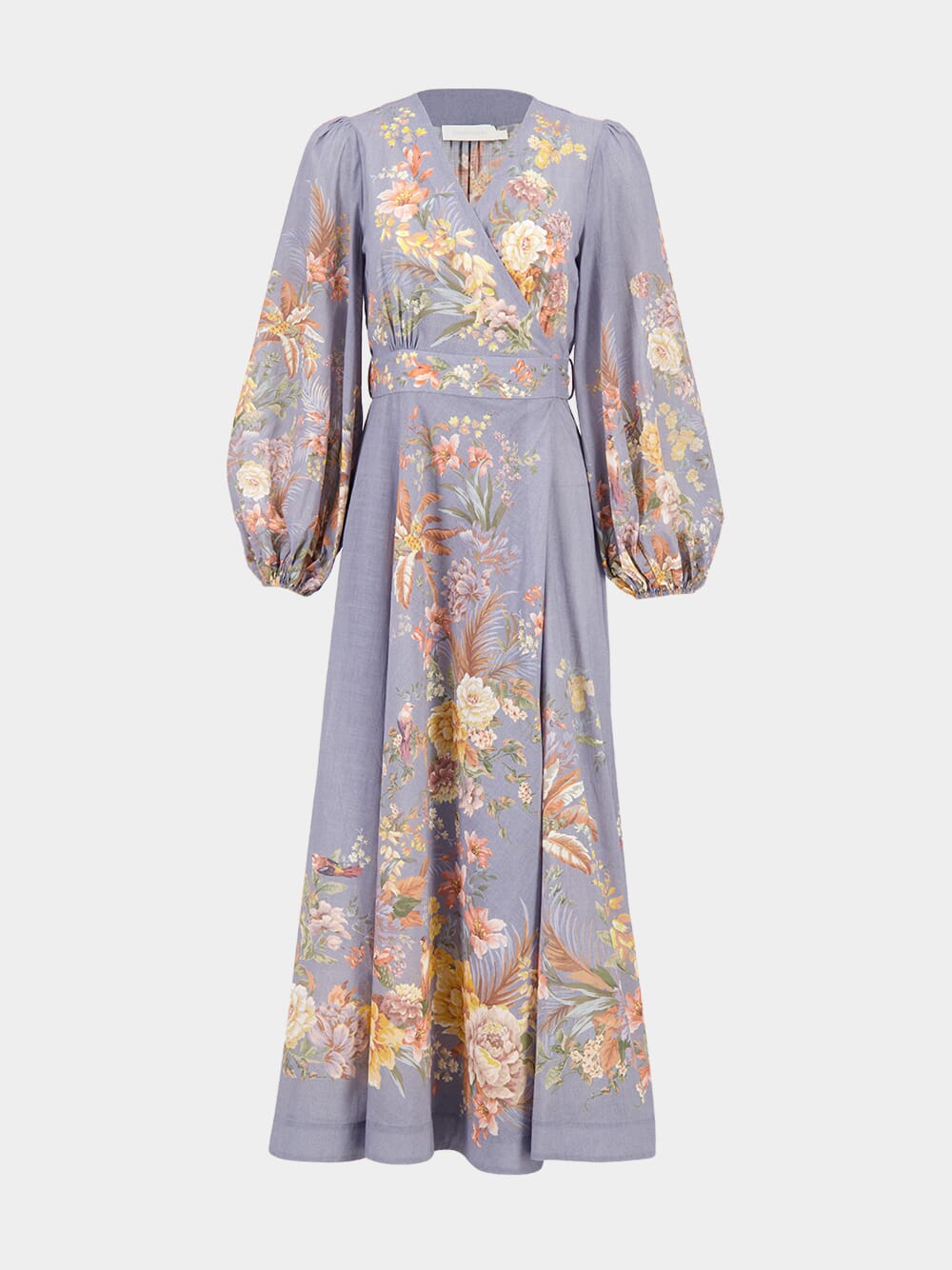 The Tallow Wrap Midi Dress in teal multi floral is a chic piece from the Resort Swim Collection. Made from 100% cotton, it features a plunging V-neckline, gathered waist, and long blouson sleeves with elasticated cuffs. A self-tie waist belt adds elegance to its flattering wrap silhouette.