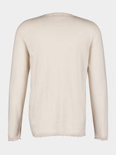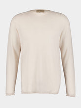 This ivory long-sleeved crew neck sweater is a paragon of comfort and luxury. Made from the softest cashmere, it boasts a relaxed silhouette and ribbed trims, offering a versatile piece that's both stylish and practical for the discerning individual.