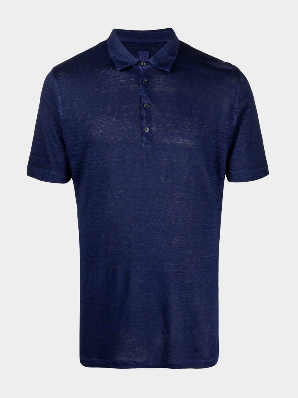 120% Lino melange semi-sheer polo shirt featuring polo collar, front button placket, short sleeves and straight hem.