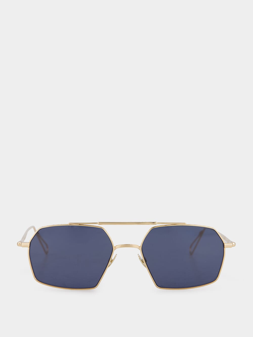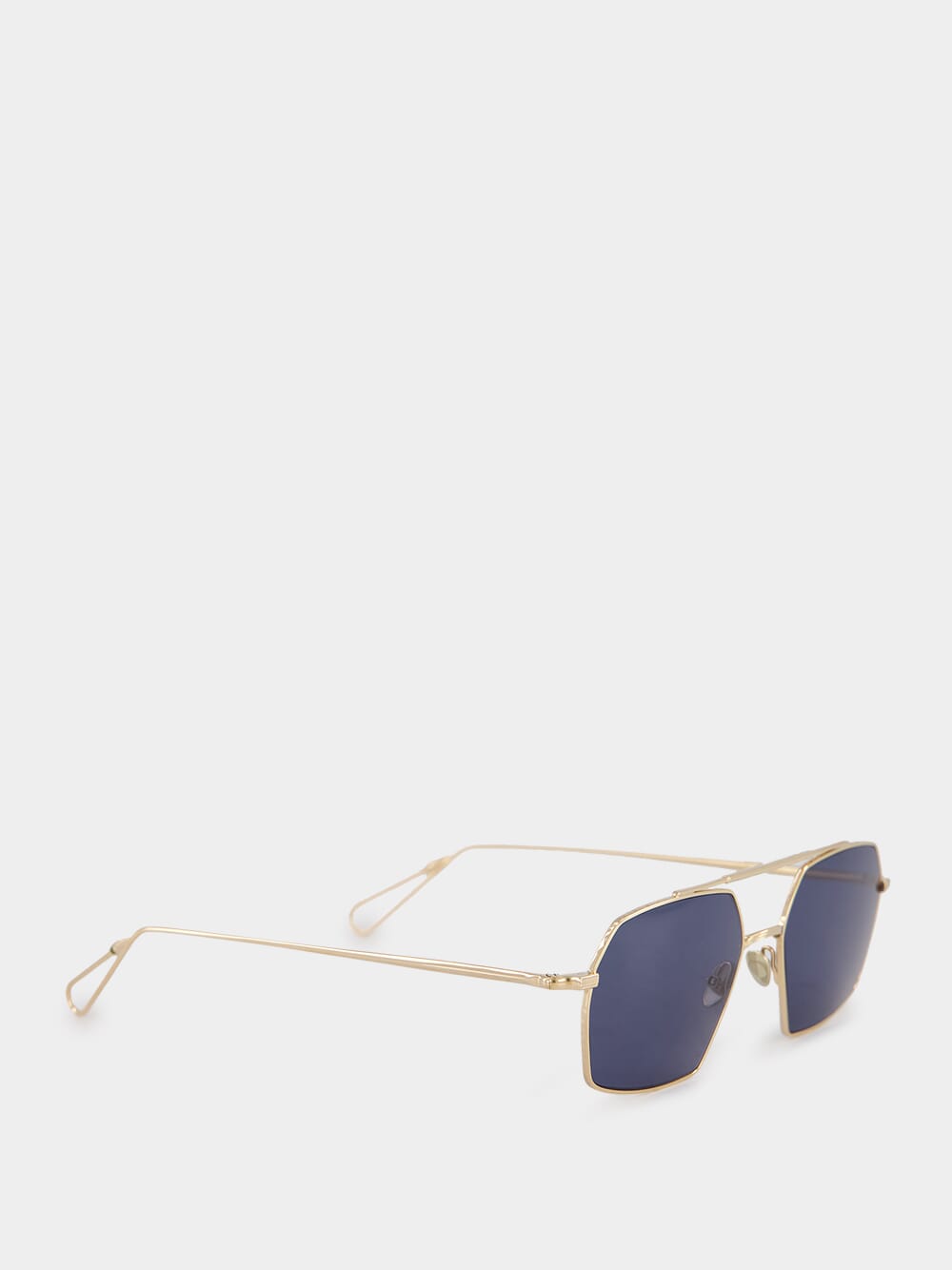 Step into sophistication with the Haussmann sunglasses, featuring sleek champagne-colored frames and striking blue lenses. This design balances sharp and soft angles for a confident look. Originally a bespoke frame created for Lebron James, the Haussmann model exudes self-assurance and style. The lightweight metal construction ensures comfort, while the distinctive geometric shape adds a modern twist to any outfit. Perfect for those who know what they want and how to achieve it, these sunglasses are a statement of elegance and determination.