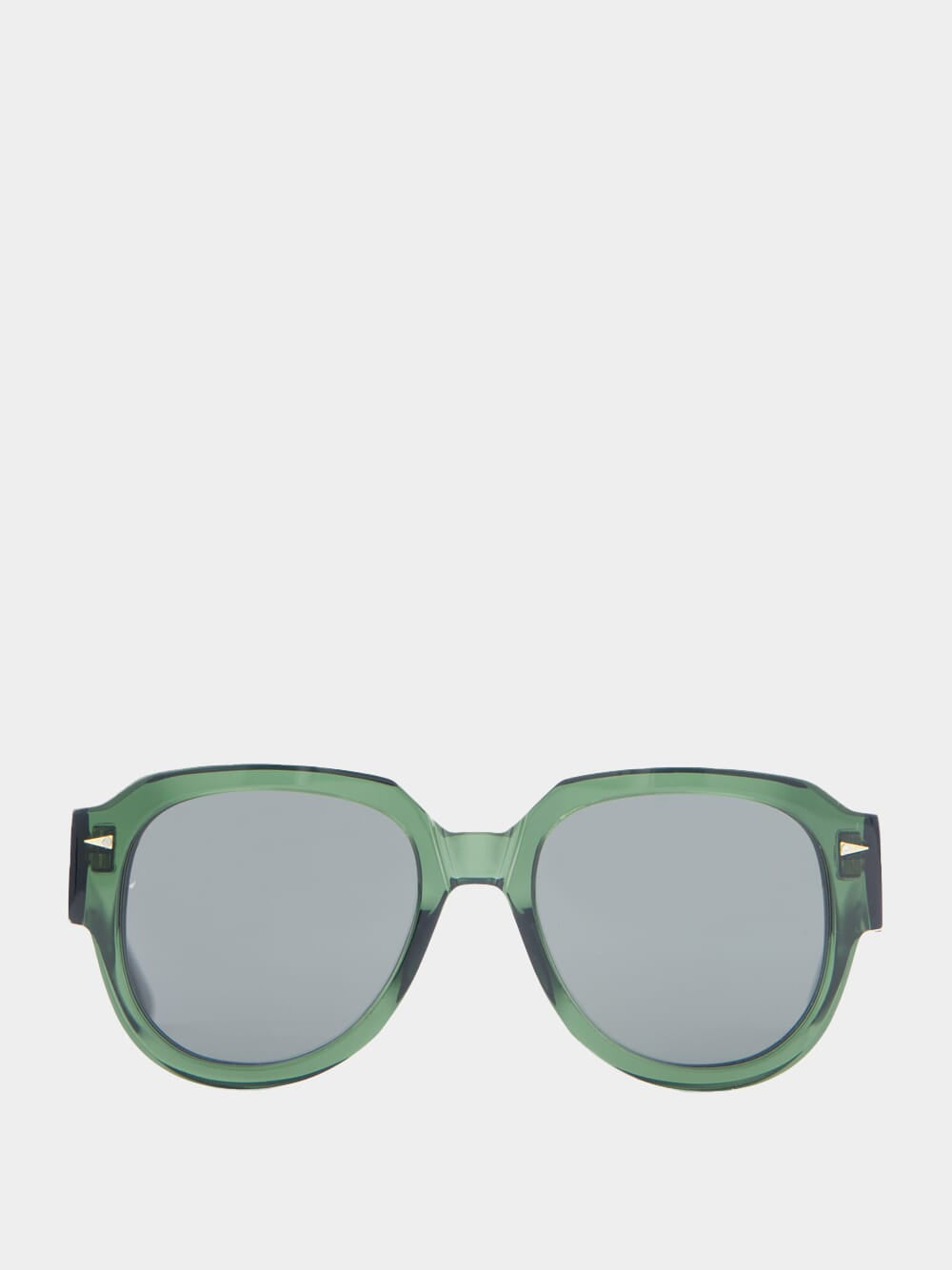 AHLEM Galliera Sunglasses, a stunning pair in a captivating green hue. These oversize sunglasses boast a unique architecture, featuring sculptural curves and softly inverted lenses. Handcrafted with precision, they effortlessly blend style and comfort. The green frames add a bold and vibrant touch to any ensemble, while providing superior UV protection.