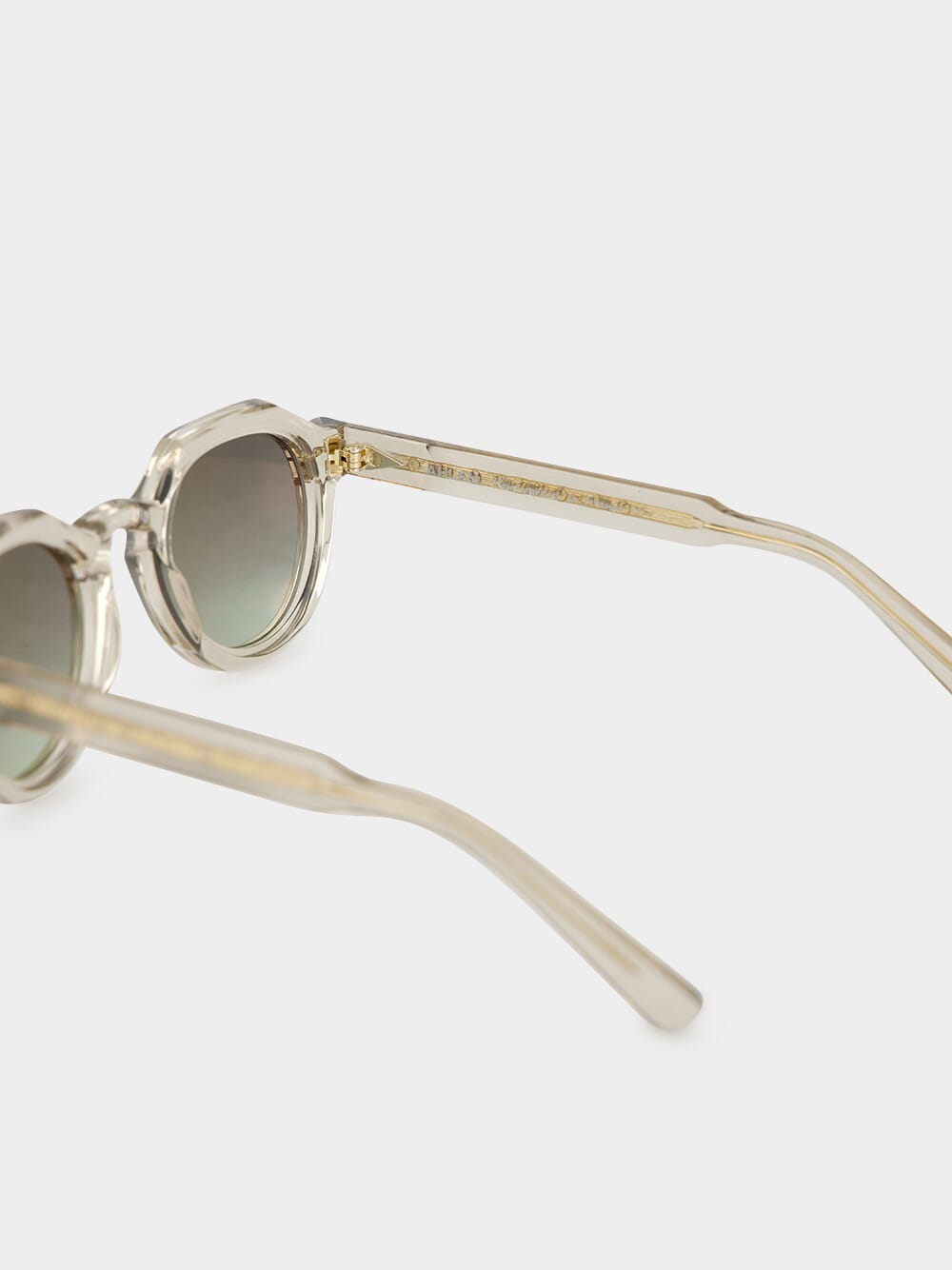 The NovemberLight Grenelle Round Sunglasses, a signature design from AHLEM, combine architectural elegance with premium craftsmanship. Made from 8mm thick, plant-based Italian acetate, they feature a keyhole bridge and beveled temples with an iconic filigree engraved core-wire for added depth. The hardware is crafted from premium steel, electro-dipped in Palladium and 22k gold for durability and luxury. These sunglasses also feature exclusive 5-barrel hinges with thread lock technology and nylon lenses with double-dipped scratch resistance and 100% UV protection. Handcrafted in France, the Grenelle sunglasses are a sophisticated and timeless accessory.