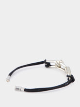 An emblematic fusion of gothic charm and modern sophistication, this Alexander McQueen bracelet features the signature skull and serpent motif. The striking silver accents are threaded through a durable black cord, offering an accessory that is both luxurious and resilient.