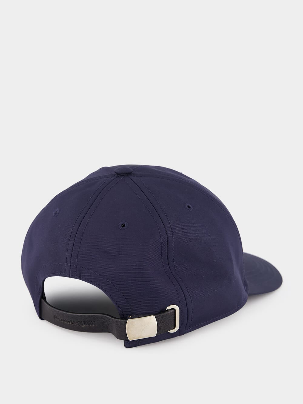 Alexander McQueen blue graffiti logo print baseball cap in navy and sky blue with adjustable closure.