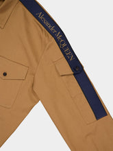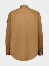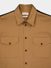 This long-sleeved shirt in cotton features a classic button-down front with two chest pockets. The shirt is detailed with logo embroidery on the shoulder, adding a touch of distinction. Its earthy brown hue is complemented by contrasting navy accents, making it a versatile piece for various occasions.