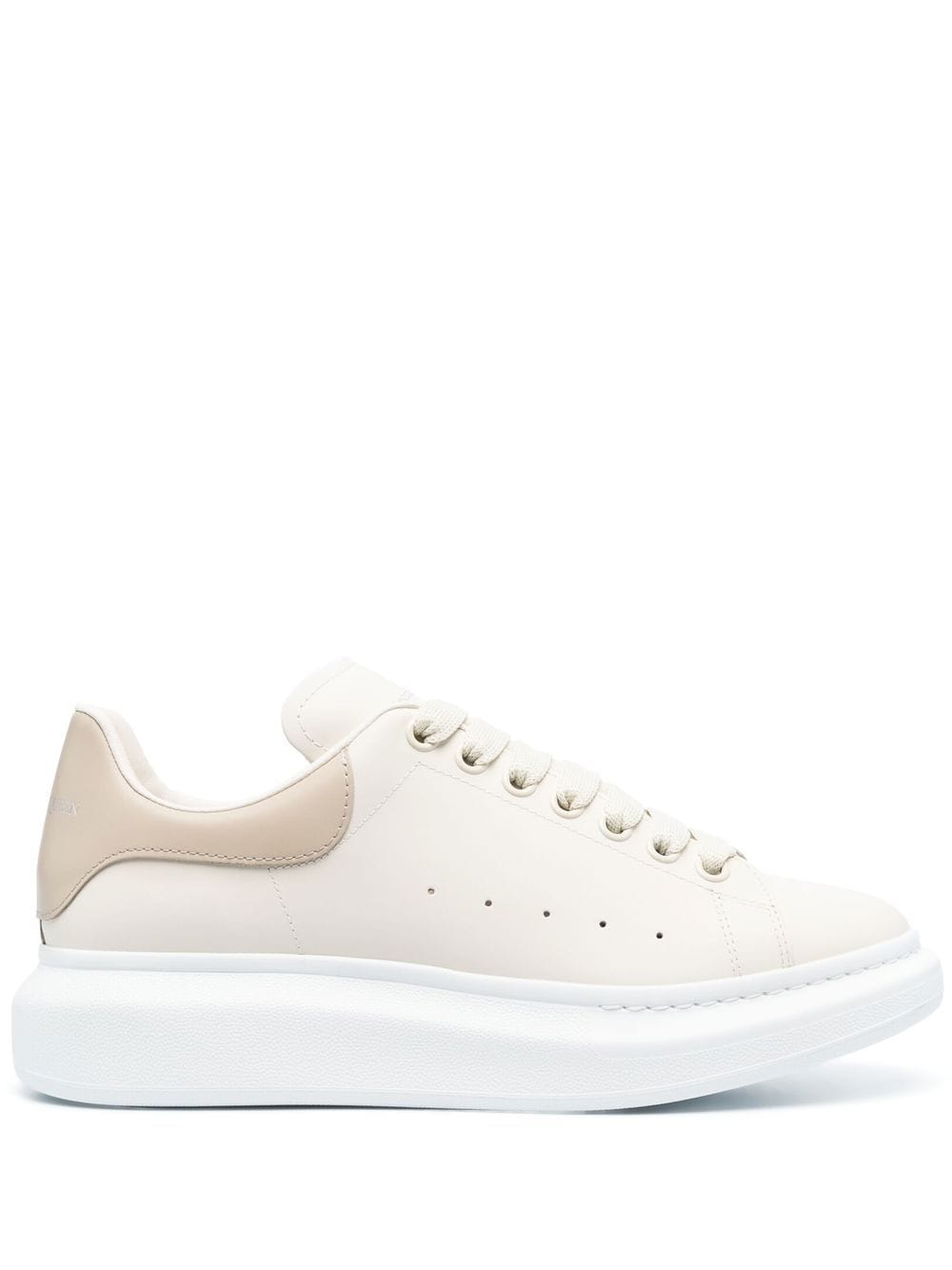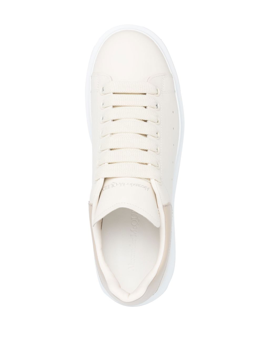 Alexander McQueen men's oversized low-top leather sneakers in vanilla and beige and round toe.