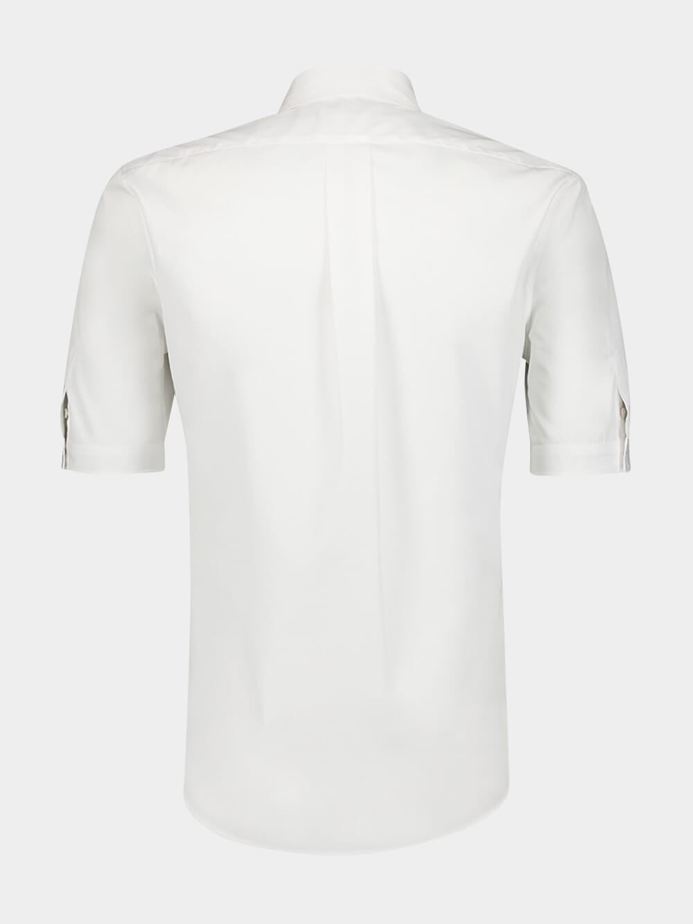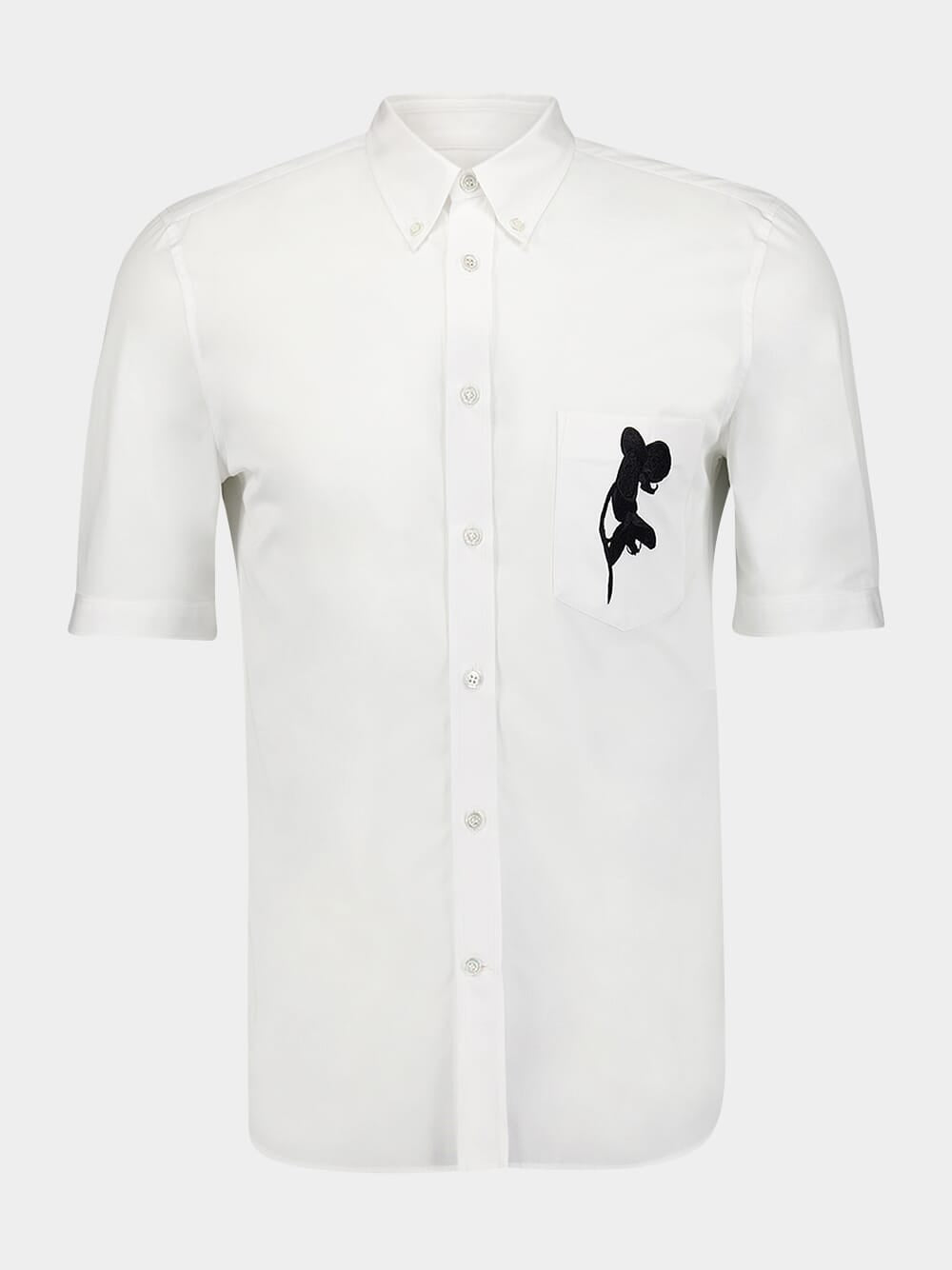 Orchid-Embroidered Cotton Shirt, a harmonious blend of timeless style and intricate embroidered design. This button-down collar shirt boasts a front button fastening, complemented by short sleeves for a breezy feel. Adorned with an alluring orchid embroidery, it features a chest patch pocket for added charm. Elevate your wardrobe with this masterpiece, complete with a curved hem, combining comfort and elegance flawlessly.