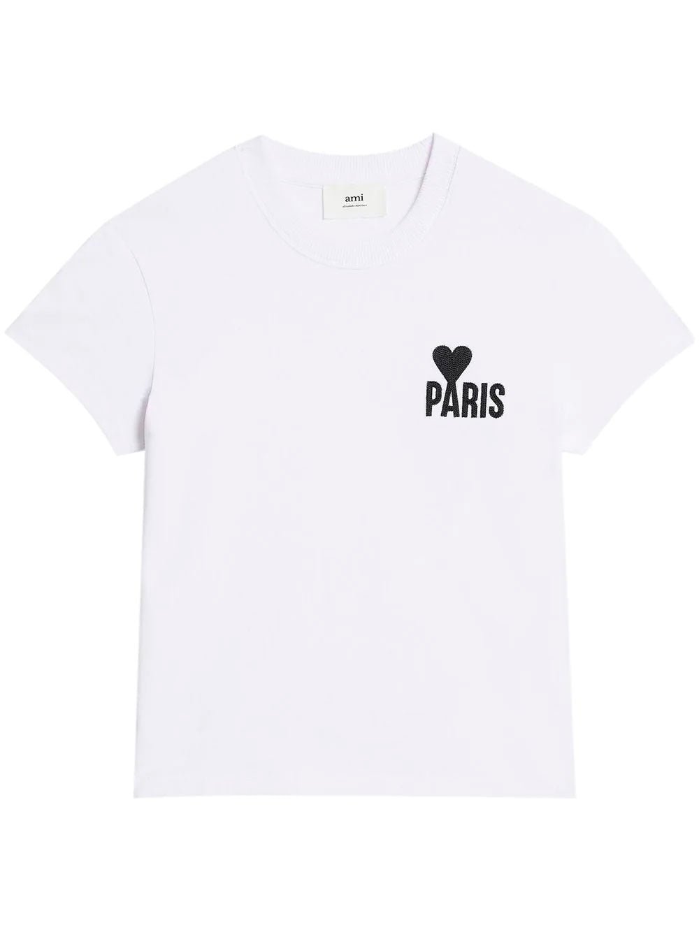 Ami Paris Ami de Coeur t-shirt in organic cotton jersey featuring tonal Ami embroidery under back neckline.
