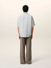 This Blue Cotton Camp Collar Short Sleeve Shirt offers a stylish, relaxed fit in a striped cotton poplin jacquard fabric. Designed with a boxy silhouette, it features a distinctive camp collar and front button tab for a laid-back yet polished look. The jacquard Ami de Coeur embroidery on the chest adds a signature touch, while the mother-of-pearl buttons elevate the design. Made from 100% cotton, this shirt is perfect for effortless styling in warm weather.