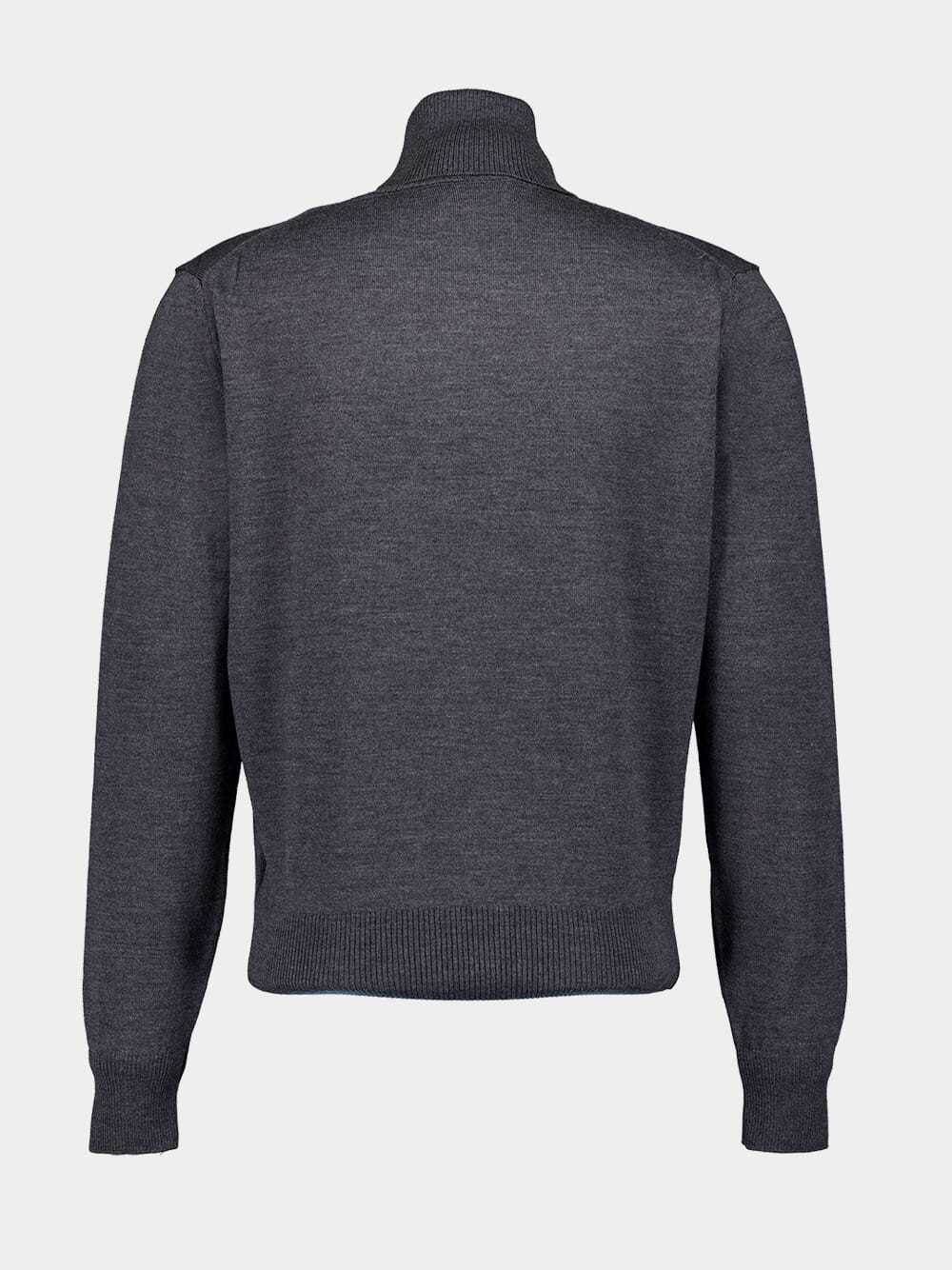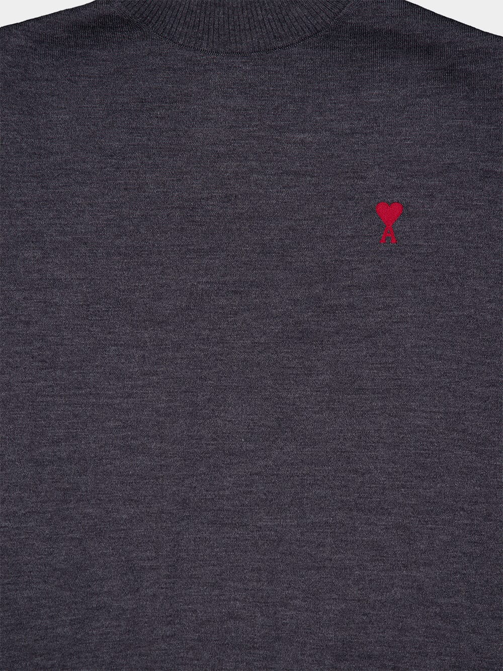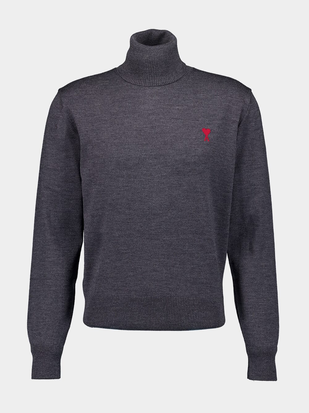This anthracite grey sweater is made from luxurious virgin wool, featuring a cozy knitted construction. It has a stylish turtleneck, long sleeves, and ribbed cuffs and hem for added comfort. The signature Ami de Coeur monogram motif embroidery adds a distinctive touch. Perfect for fall and winter, this elegant sweater offers warmth and sophisticated style.
