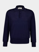 Navy Blue Long-Sleeve Wool Silk Polo