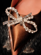 The Rosie pump in mocha satin provides a luxurious update to the classic stiletto. Adorned with a dazzling crystal embellishment, these pumps are an elegant choice for evening wear or special occasions.