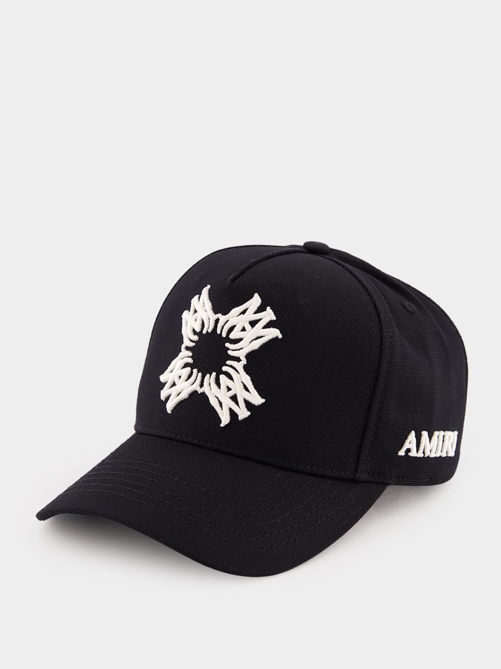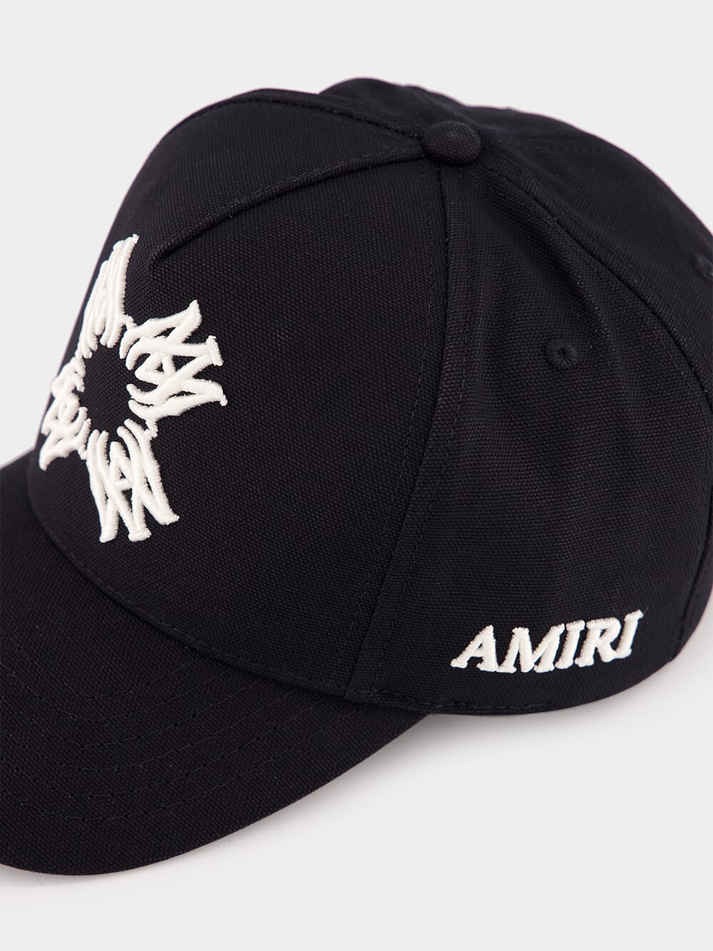This stylish black canvas hat features the iconic MA Quad monogram embroidered in white. Made from 100% cotton, it offers comfort and durability. Designed with a curved brim, embroidered eyelets, and a double snapback fastening, it is the perfect blend of luxury and casual style. Made in the USA, it showcases exceptional craftsmanship, making it a versatile accessory for any wardrobe. Suitable for both casual and athleisure looks.