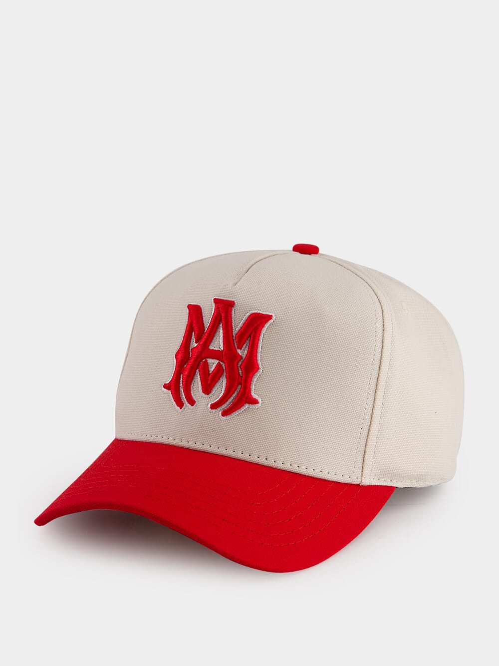 Introducing the MA Canvas Hat, a stylish accessory featuring the house's signature graphics in vibrant seasonal colors. This hat showcases the MA icon embroidered on the front, complemented by a contrasting red curved brim. Designed with embroidered eyelets for breathability and a double snapback fastening for a secure fit, this hat is the perfect blend of fashion and function.