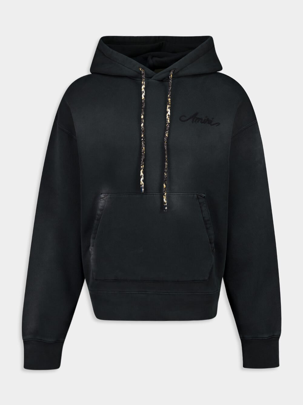 The AMIRI Black Bleach Bandana Shorts bring together refined craftsmanship and signature detailing. Made in Italy from soft cotton, these shorts feature a comfortable elastic waistband with drawcord, tonal AMIRI script embroidery at the front, and functional side pockets. A distinct bleached bandana patch on the back pocket adds a unique visual element, reflecting the brand’s artistic approach to design.