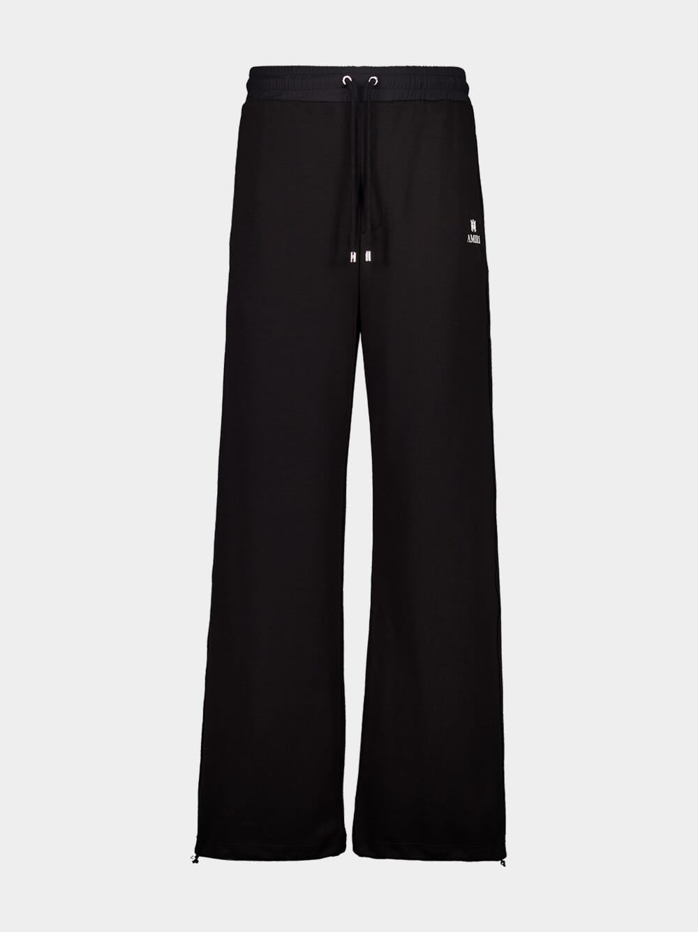 The AMIRI Lounge Track Jacket redefines athletic essentials with a luxury edge. Designed for the Pre-Fall 2025 collection, this elevated track silhouette is crafted from a refined polyester-cotton blend, offering both comfort and structure. A high collar, elastic waistband, and double-zip front closure create a sleek profile, while the embroidered AMIRI monogram logo at the chest adds a sharp, minimal touch. Whether styled casually or as part of a matching set, this jacket blends performance-inspired design with premium craftsmanship.
