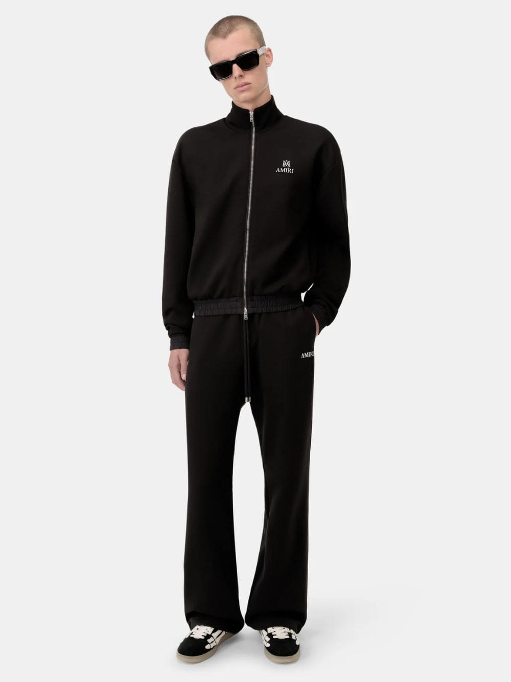Part of AMIRI’s elevated take on sportswear for the Pre-Fall 2025 collection, the Lounge Track Pants combines classic athletic ease with refined detailing. Crafted in Italy from a premium polyester-cotton blend, this relaxed silhouette features an elastic waistband with a functional drawcord, back welt pockets, and a subtle AMIRI logo. Designed to pair perfectly with the coordinating Lounge Track Jacket, these pants deliver both comfort and understated luxury.
