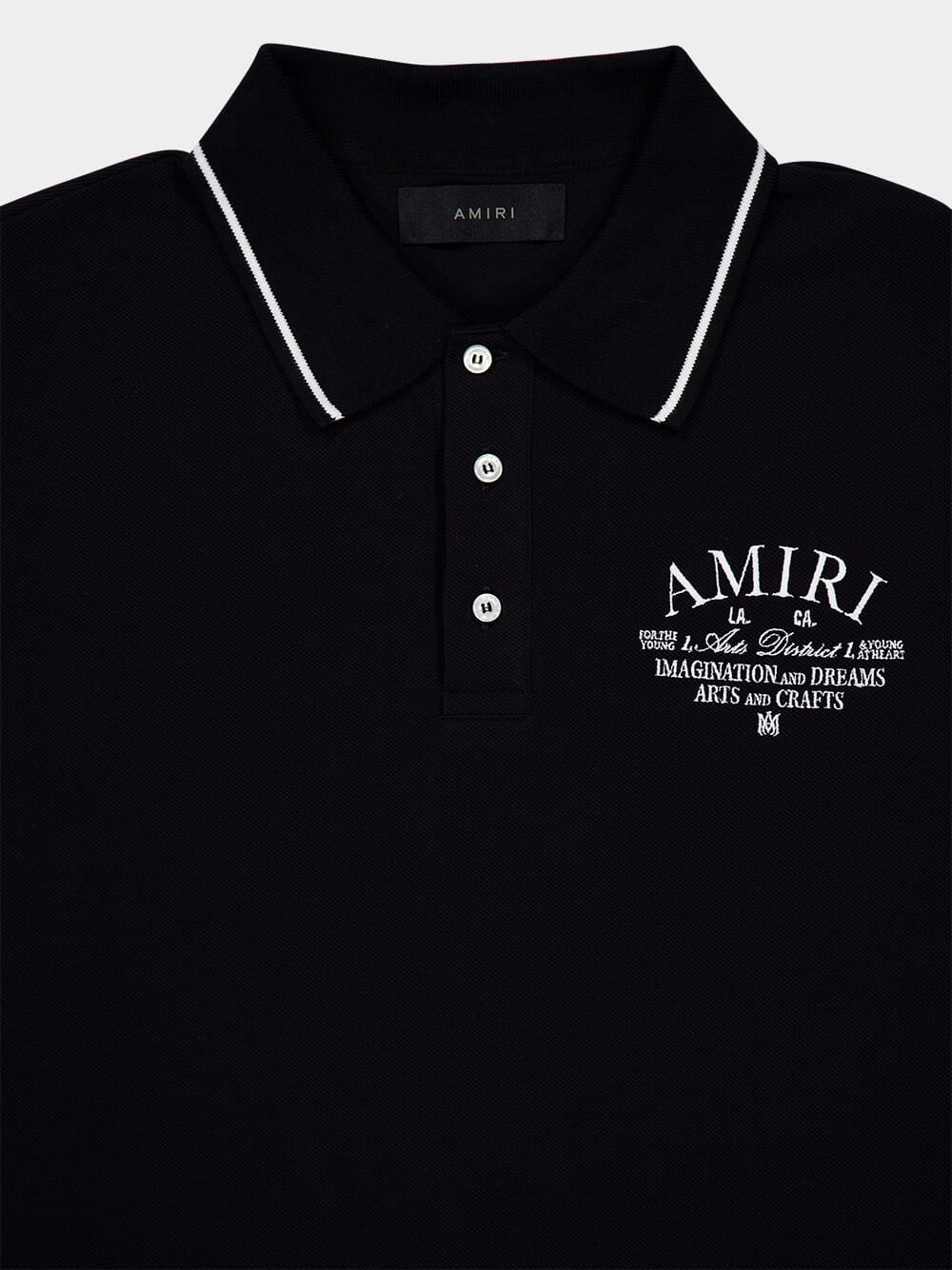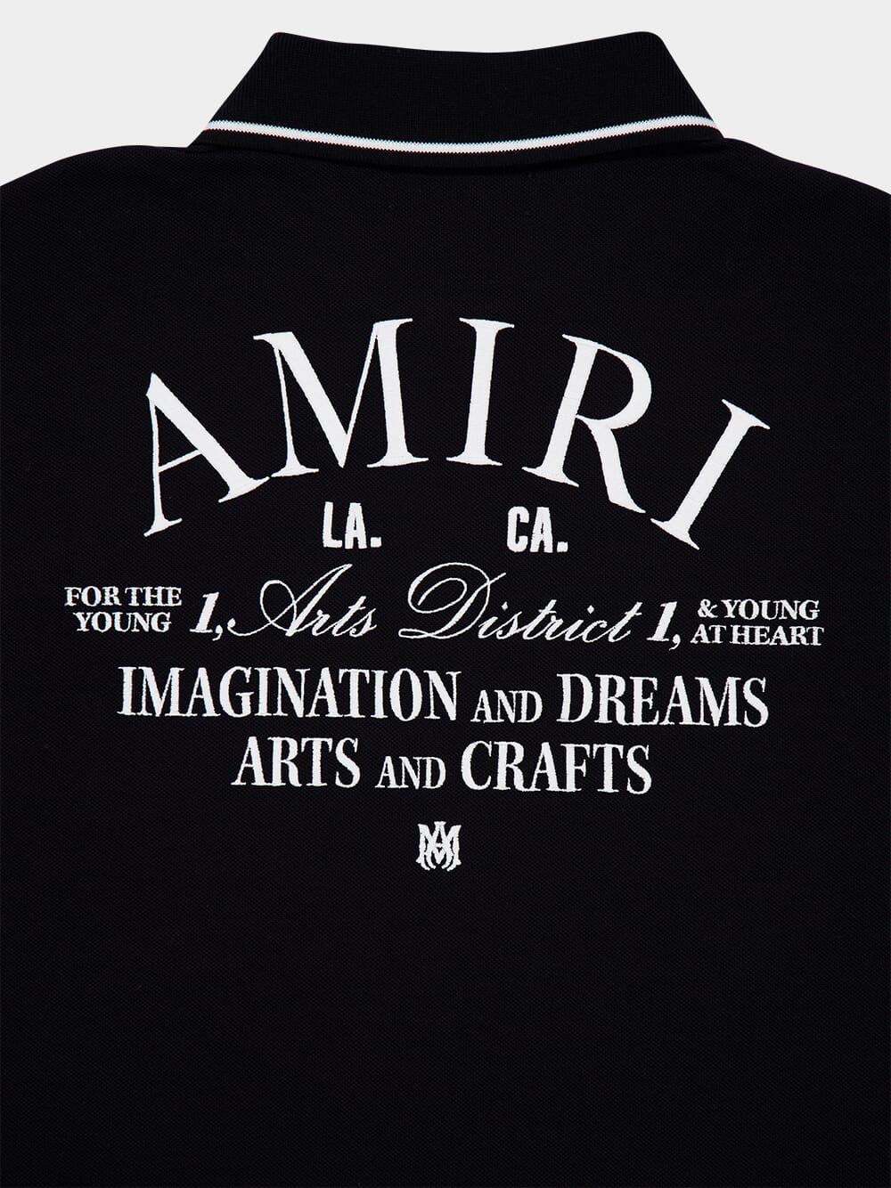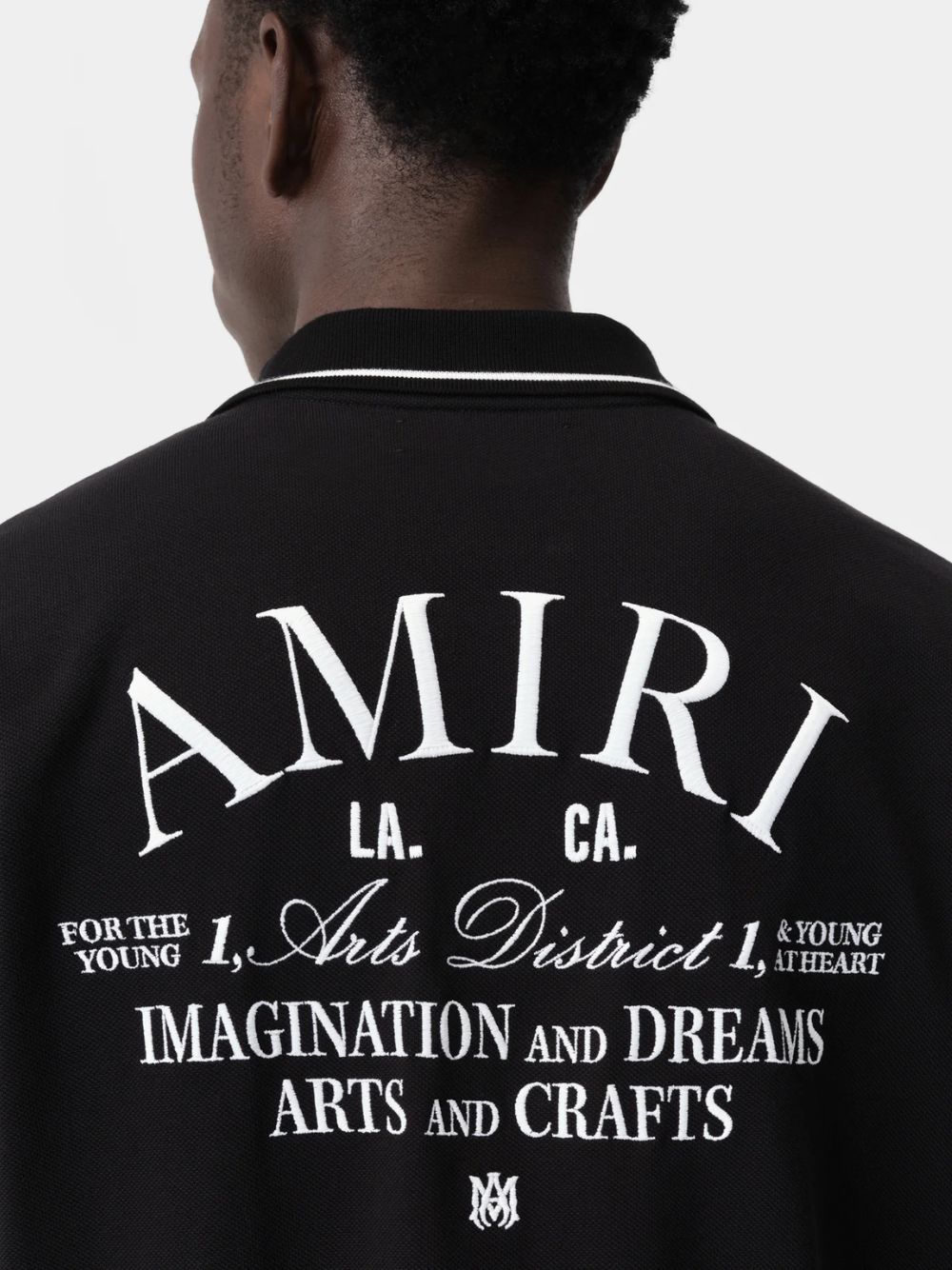 The Amiri Arts District Polo captures the essence of Los Angeles' vibrant Arts District. Made from premium cotton, this polo features intricate logo embroidery, a two-button placket, and contrasting tipping on the collar and cuffs, making it a perfect blend of style and craftsmanship.