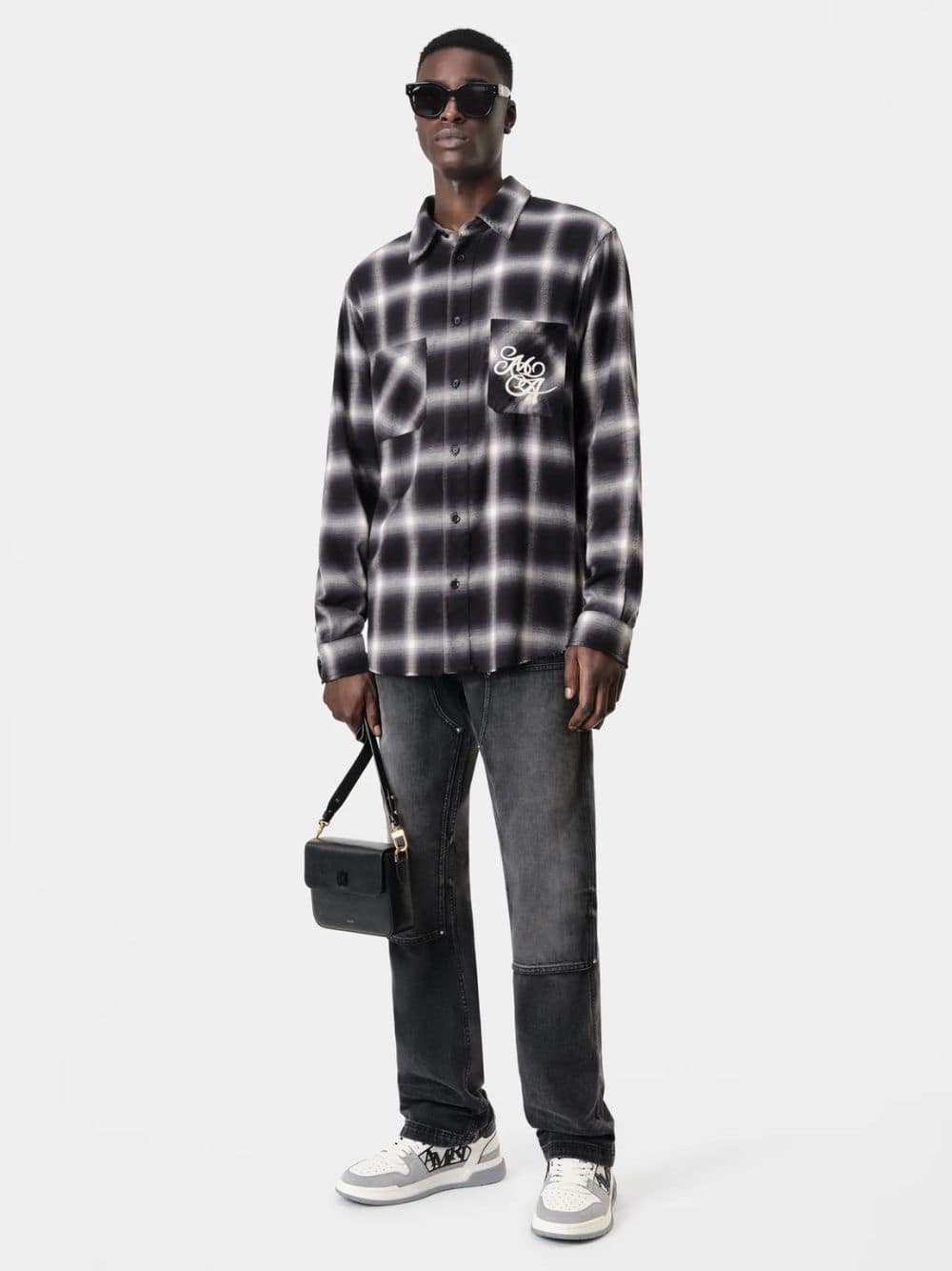 The Black Swirl Flannel Shirt blends classic flannel styling with modern details inspired by Old Hollywood. Crafted from 100% cotton, it features swirl logo embroidery and appliqué on the chest, adding a unique twist to this timeless piece. Finished with a button-down closure and button cuffs, it offers both comfort and elegance. Made in the USA, this shirt is a perfect choice for elevating casual looks with a touch of refined craftsmanship.