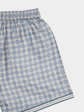 These luxurious light blue MA Quad silk shorts introduce the iconic monogram for a modern and stylish statement. Expertly crafted in Italy from premium silk twill, they offer a soft, fluid drape and refined silhouette. The elastic waist with a drawcord ensures an adjustable fit, combining comfort and sophistication. Perfect for relaxed moments or elevated casual outings, these shorts bring a touch of luxury to your autumn-winter wardrobe.