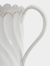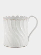 Bold and sculptural, the Peggy Mug is a striking piece from a generous and polymorphic collection, defined by its dynamic volume, twists, and striated undulations. Handmade in Paris, this ceramic mug captures the essence of organic design, with its fluid form and tactile texture that invite both admiration and use. Finished in a smooth white glaze, it is stamped with the Astier de Villatte monogram and the initials of the artisan who crafted it. A unique addition to elevate everyday moments.