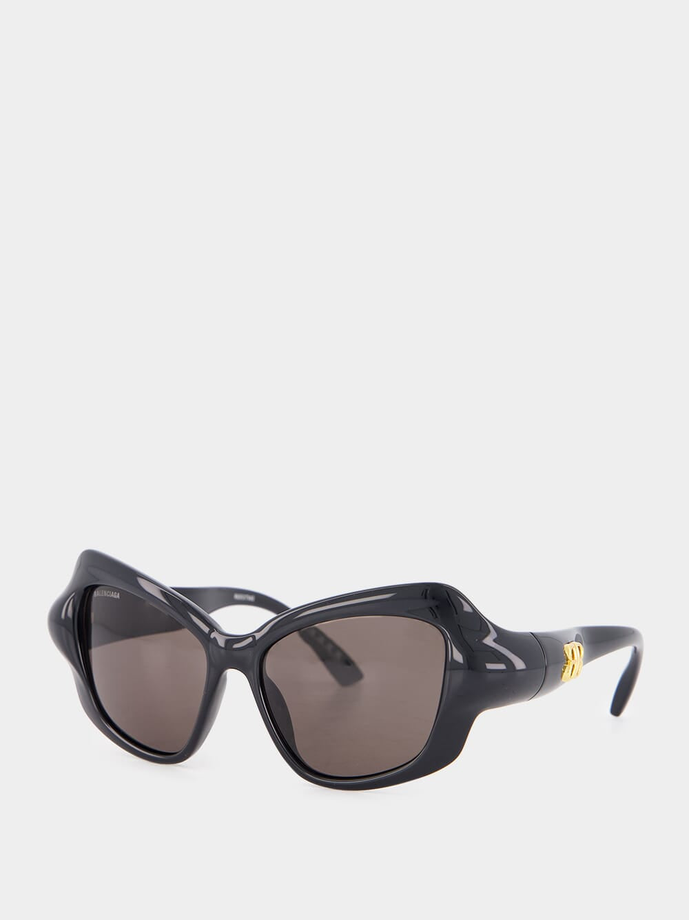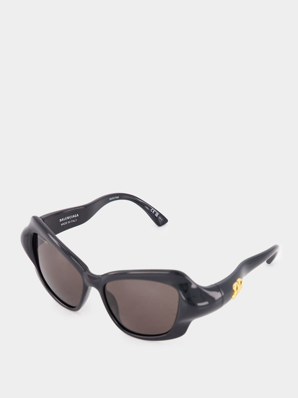 The Palazzo Cat Sunglasses in black are a stylish accessory featuring a bio-based injected nylon frame and temples. These sunglasses have a cat-eye shape with a standard fit, and include shiny gold Monaco BB logos on both temples and a lasered logo on the right lens. Flex hinges provide increased comfort, while the lenses, made from Bio-Nylon, offer 100% UVA/UVB protection. With a temple length of 5.7 inches and a bridge length of 0.7 inches, these sunglasses are perfect for sunny days.