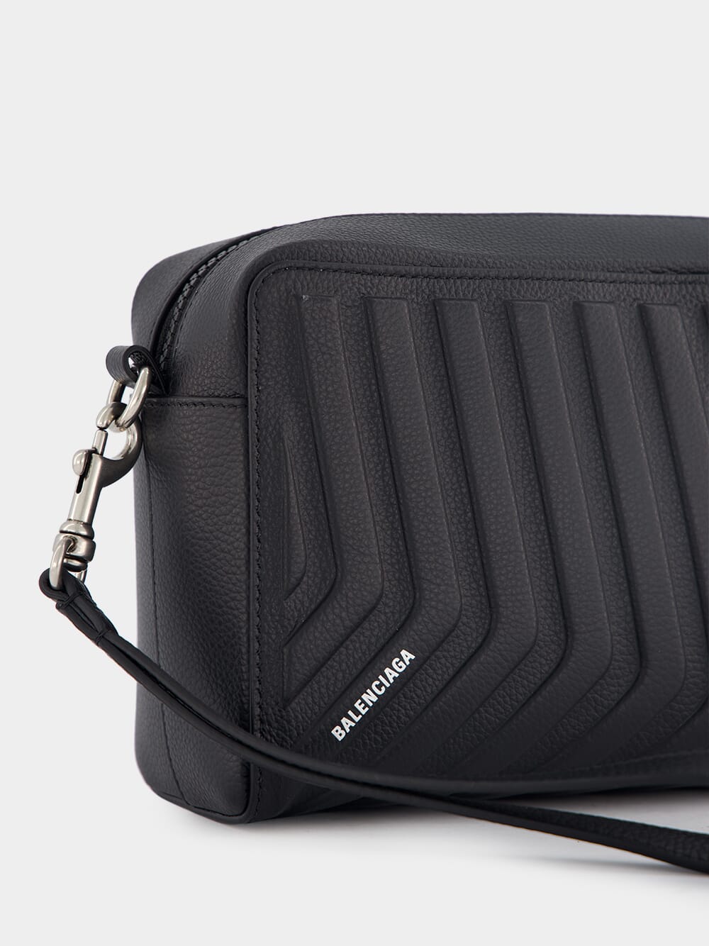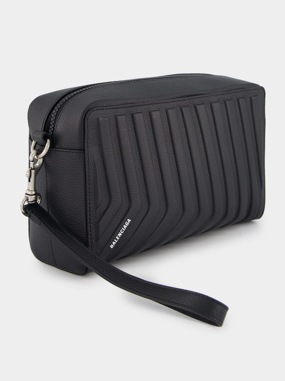 This sleek pouch is designed to perfection, featuring a removable handle measuring 17.3 inches for effortless portability. Adorned with the iconic Balenciaga logo on the front, it exudes a blend of elegance and style. The double end zipped closure ensures secure storage, while the interior surprises with 1 convenient inner patch pocket and 6 integrated card slots.