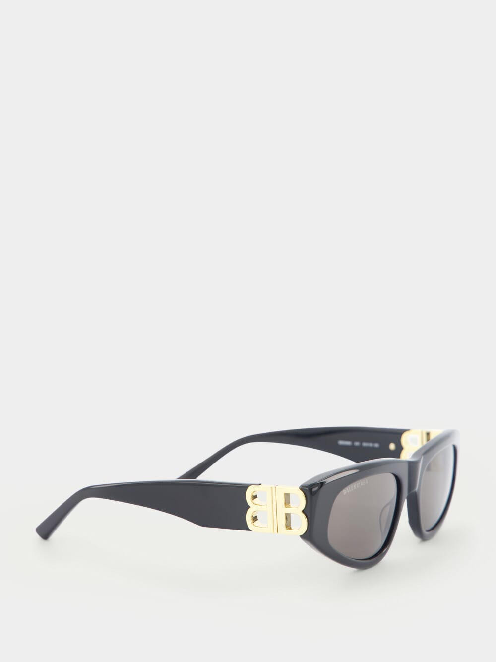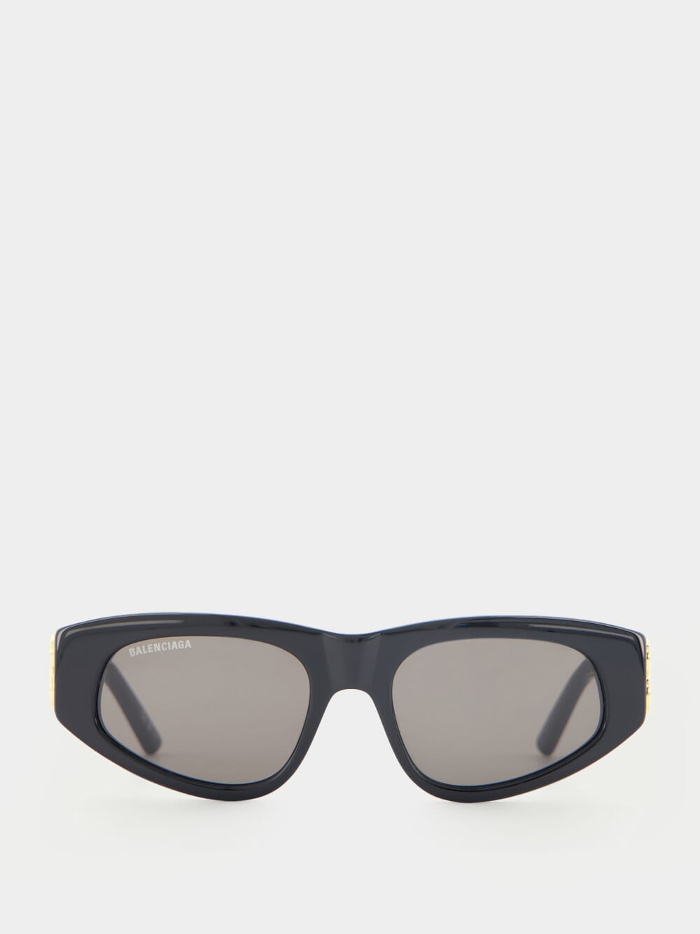 Balenciaga Dynasty d-frame black sunglasses featuring hidden hinges within the shiny gold BB logo.