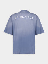 Logo-Print Faded Effect T-Shirt, crafted from vintage jersey for a unique and comfortable feel. This unisex t-shirt offers a medium fit, making it a versatile addition to any wardrobe. Featuring a classic crewneck and short sleeves, it exudes effortless style. The Balenciaga back logo is intricately embroidered at both the front and back, adding a touch of sophistication to the washed-out effect.