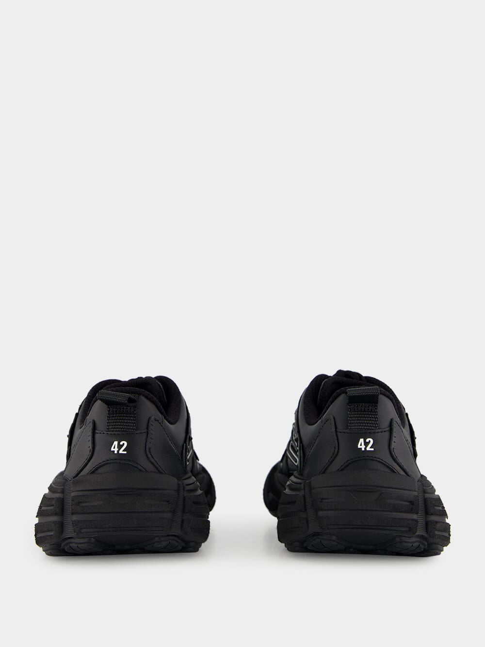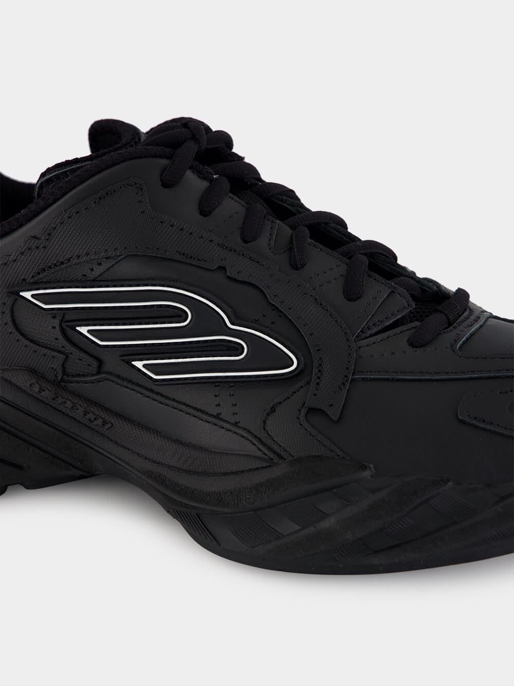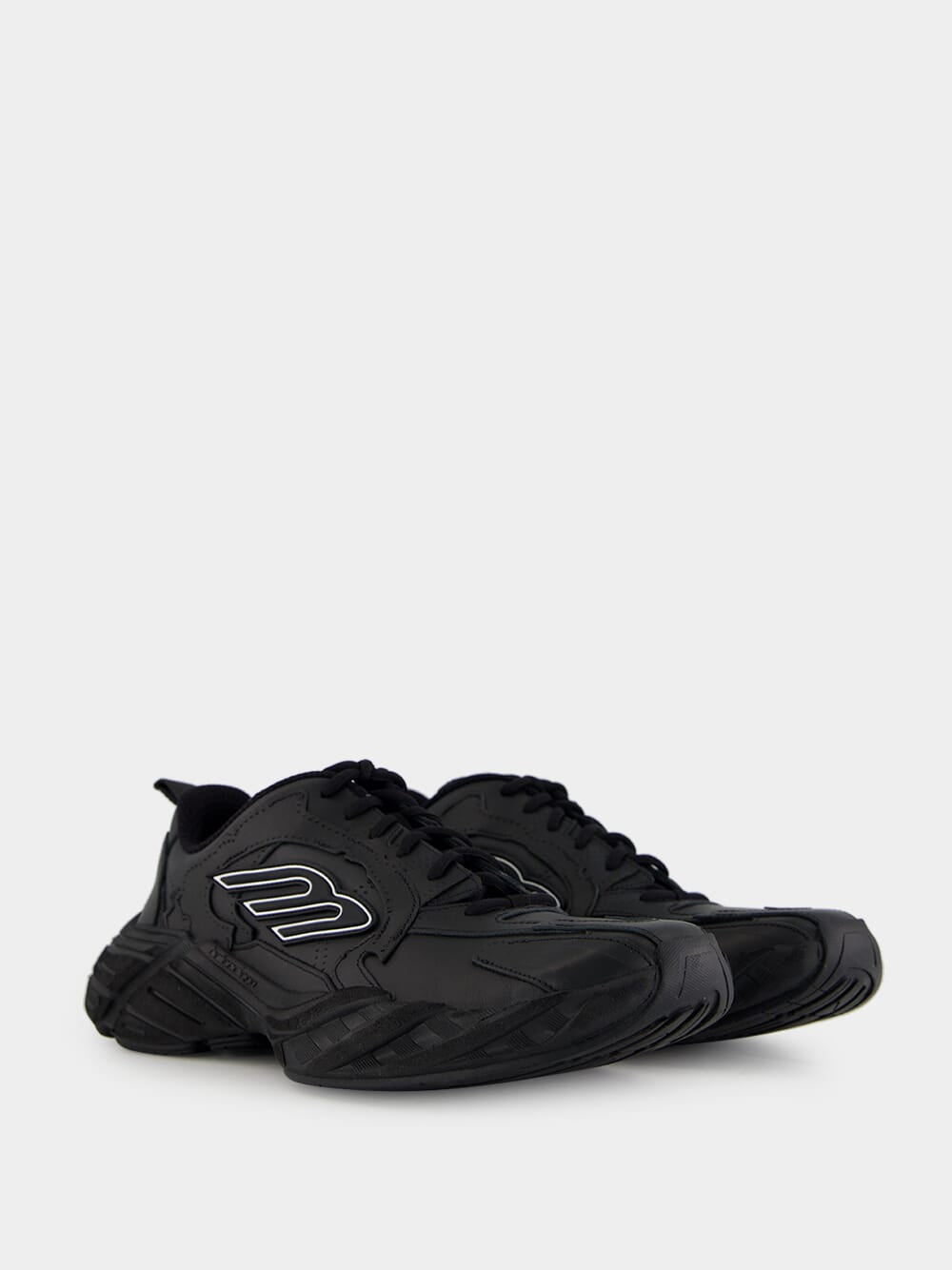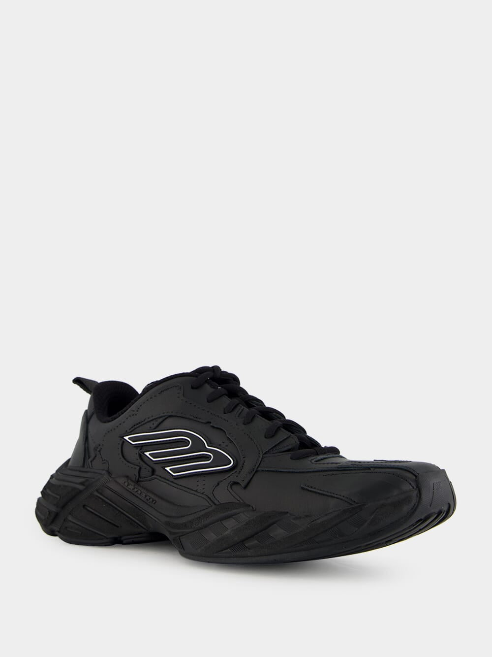 The Monday Shoe by Balenciaga redefines sporty sophistication with its sleek, modern design. Crafted from premium black cowskin and polyester, this sneaker features visible top-stitching for a refined touch. Signature 3B sports icon artwork is showcased in rubber on each side and debossed on the tongue, while the Balenciaga logo is embossed on the exterior sole. A practical back pull-tab ensures effortless wear. Finished with a cushioned foam insole and durable rubber sole, these sneakers offer both comfort and statement-making appeal.