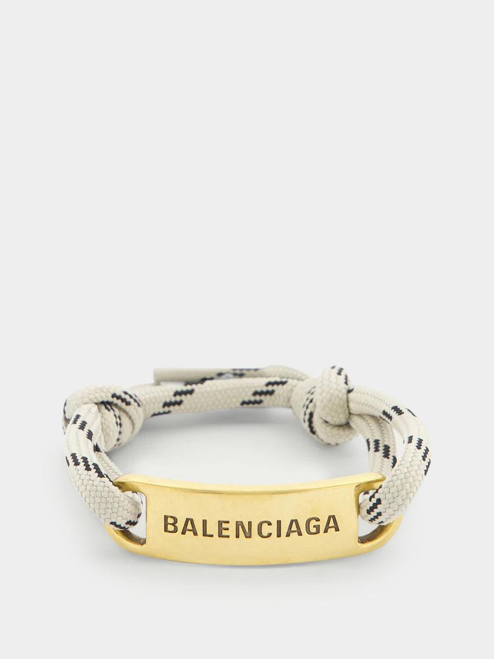 Balenciaga Plate engraved logo rope bracelet featuring gold-tone hardware and with an adjustable fit.