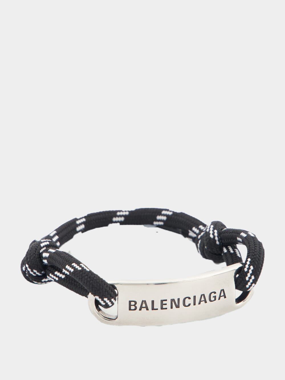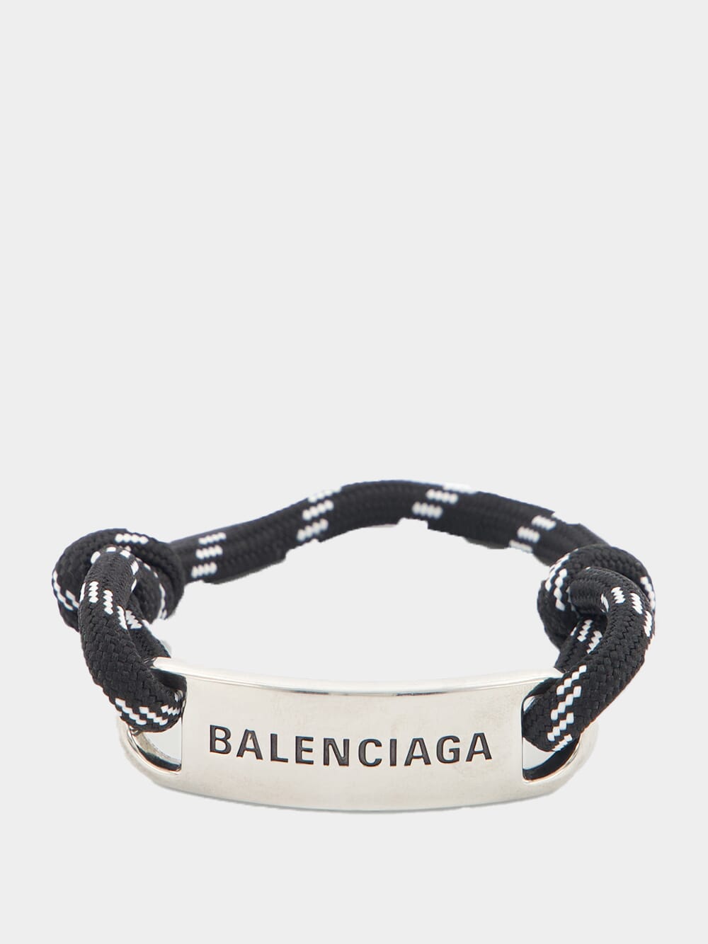 Balenciaga Plate engraved logo rope bracelet featuring silver-tone hardware and an adjustable fit.