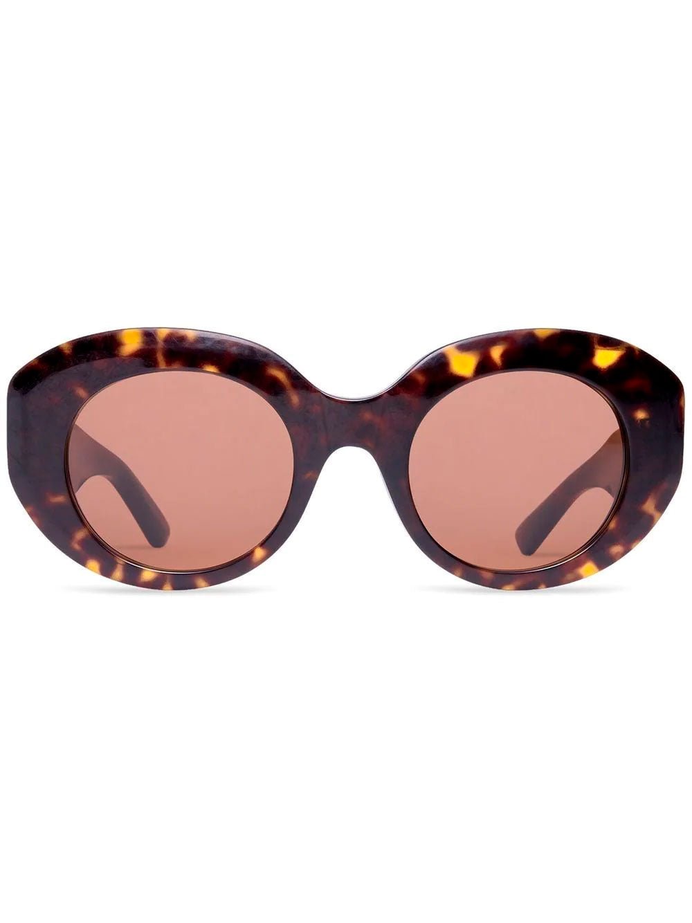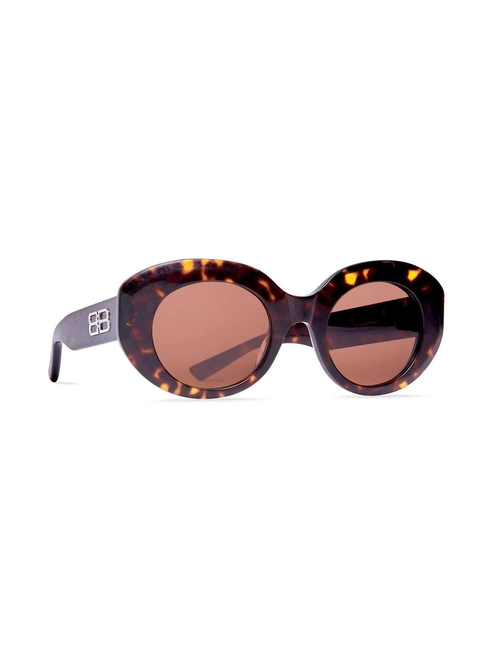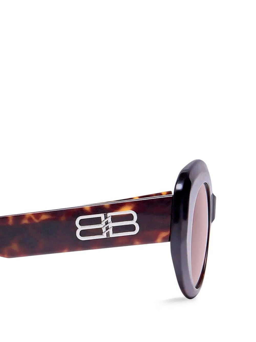 Balenciaga Rive Gauche sunglasses in dark havana acetate with brown lenses and round frame.