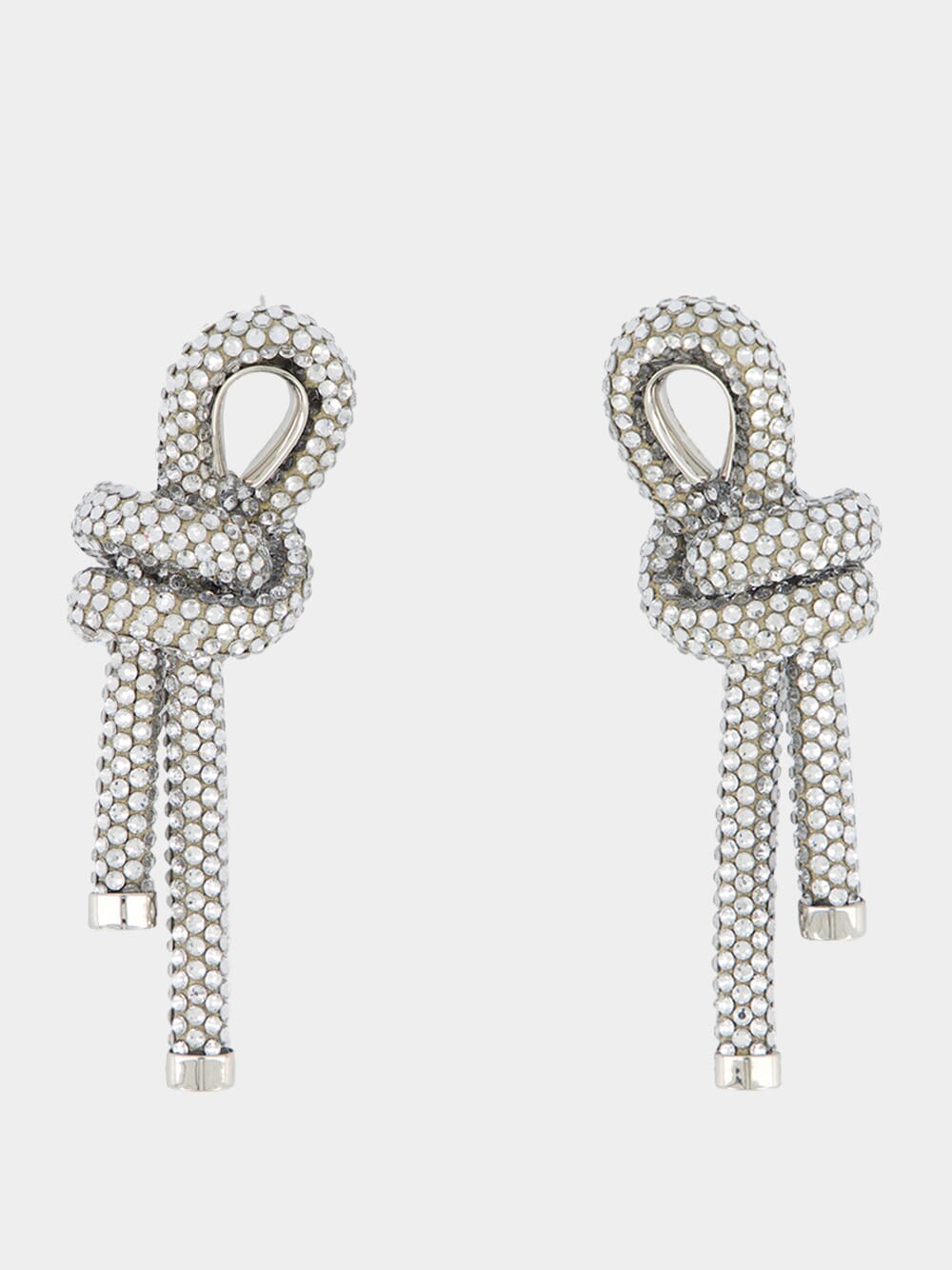 Rope Crystal-Embellished Earrings, showcasing exquisite rope and knot detailing. These earrings feature captivating crystal embellishments, adding a touch of elegance to any look. The drop design creates a striking visual impact, while the secure post-back fastening ensures a comfortable fit for pierced ears. Sold in pairs, these earrings are the perfect accessory to accentuate your unique sense of fashion.