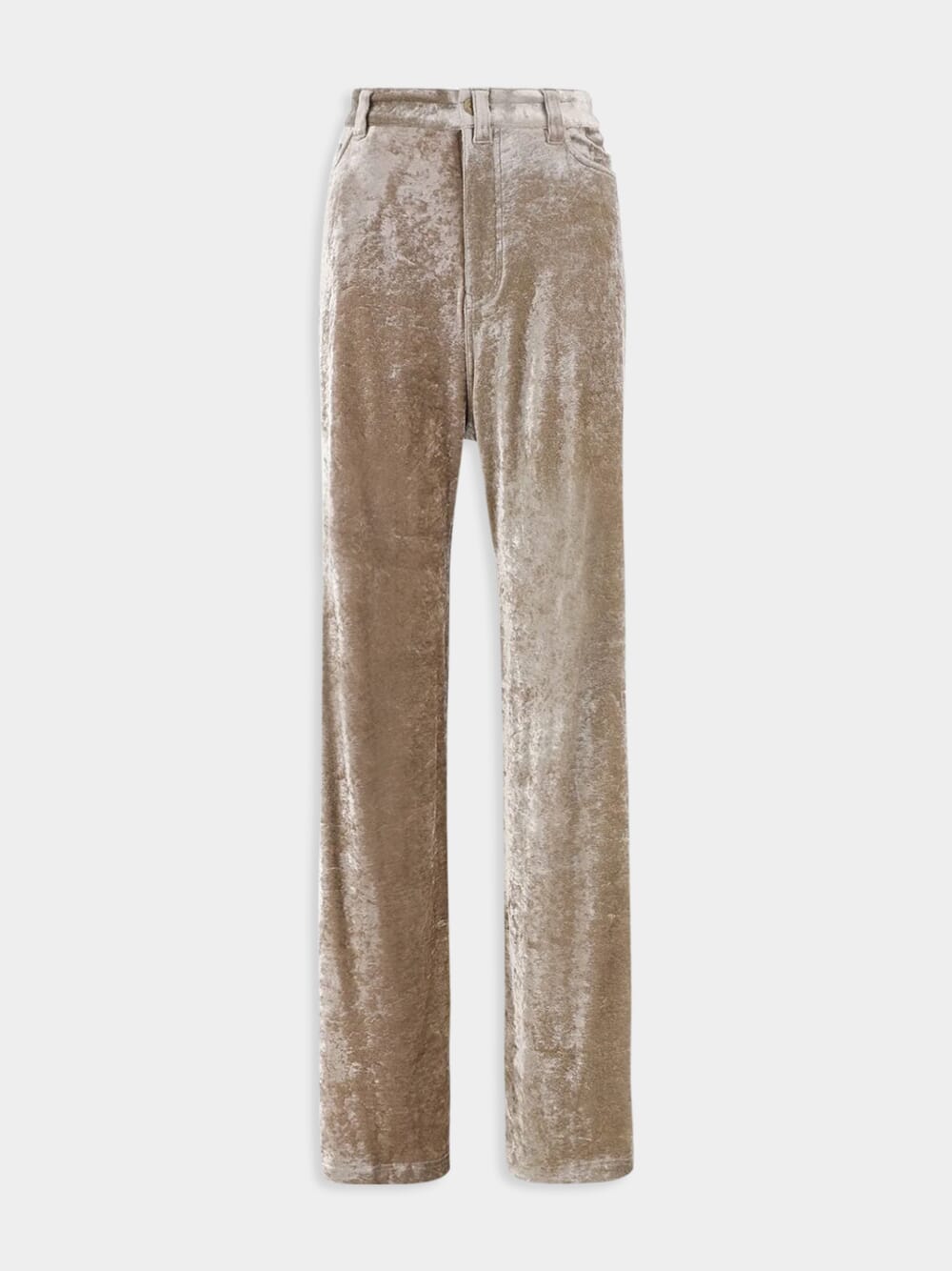 Balenciaga crushed stretch velvet large fit trousers featuring mid-waist.