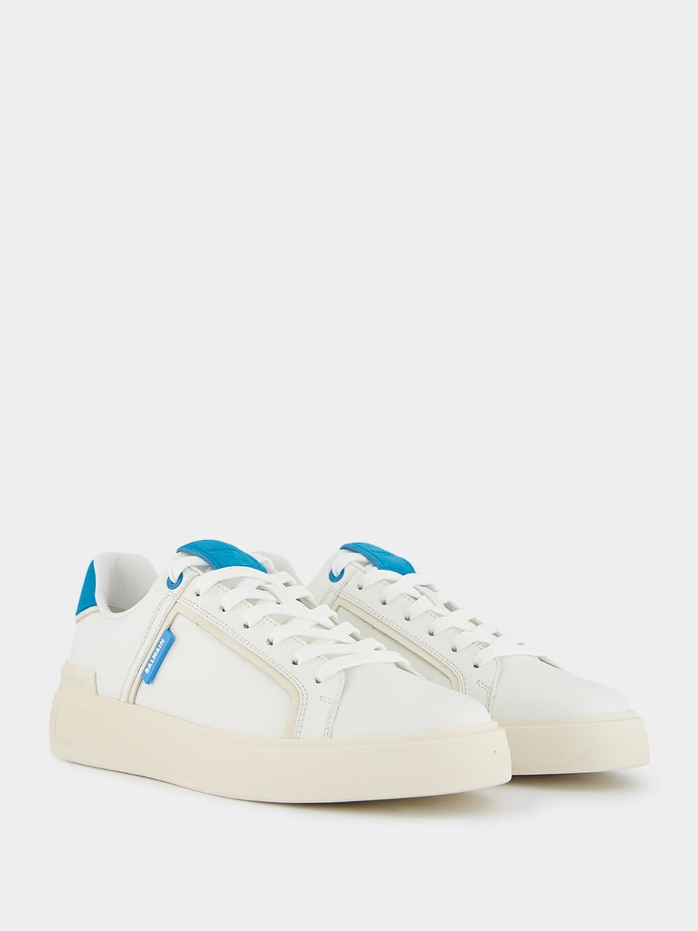 B-Court Leather Sneakers, with a contrasting heel that adds a bold and modern twist. Featuring a logo patch at the tongue and logo tag, these sneakers showcase a distinctive brand identity. The round toe design ensures both comfort and versatility, while the front lace-up fastening offers a secure fit. Complete with a durable rubber sole, these sneakers embody contemporary fashion and enduring functionality.