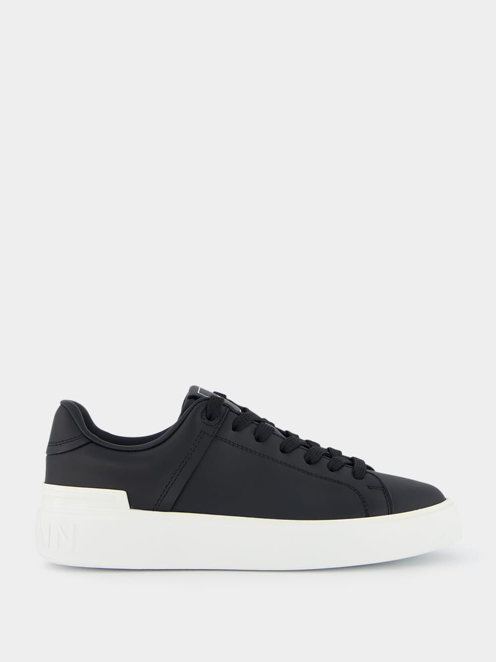 B-Court Low-Top Sneakers by Balmain, crafted from premium leather, this pair boasts multiple eye-catching branded details. A logo patch adorns the tongue, while the sole is elegantly embossed with the iconic Balmain logo.