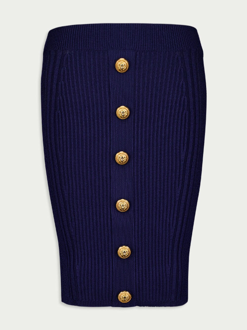 Cable-Knit Pencil Skirt, a true embodiment of style and comfort with its intricate cable knit pattern. Elevate your wardrobe with this timeless piece, featuring decorative button detailing that adds a touch of elegance to its pencil silhouette.