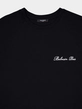 This cropped Balmain t-shirt redefines casual luxury. The sharp black hue serves as a canvas for the subtle yet distinct signature logo, offering an edge of sophistication. With its cropped cut, it provides a modern silhouette perfect for pairing with high-waisted trousers or skirts. Ideal for a woman with an eye for contemporary elegance.