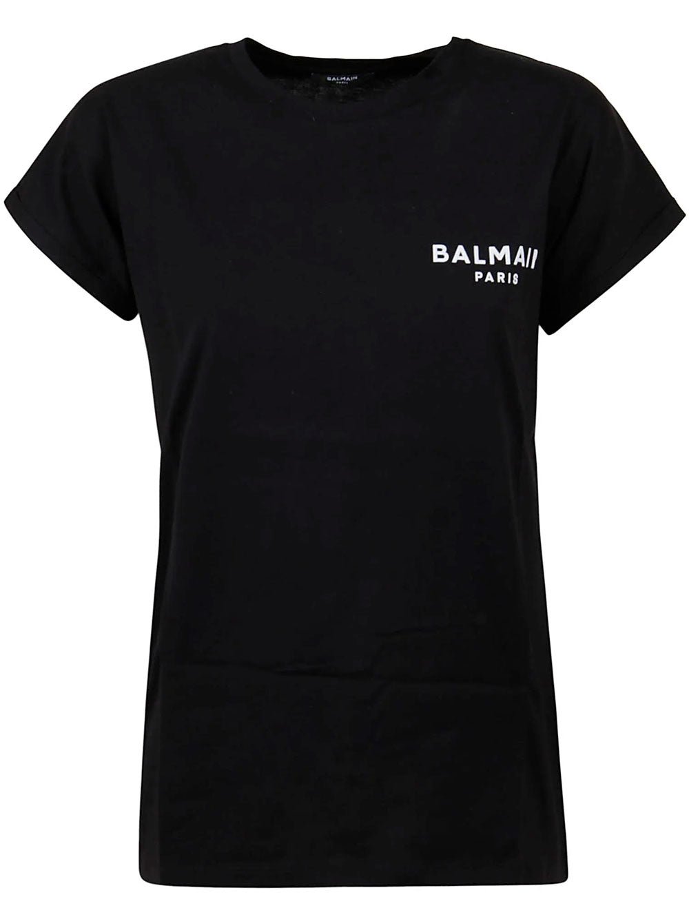 Balmain eco-responsible cropped cotton t-shirt with logo print.
