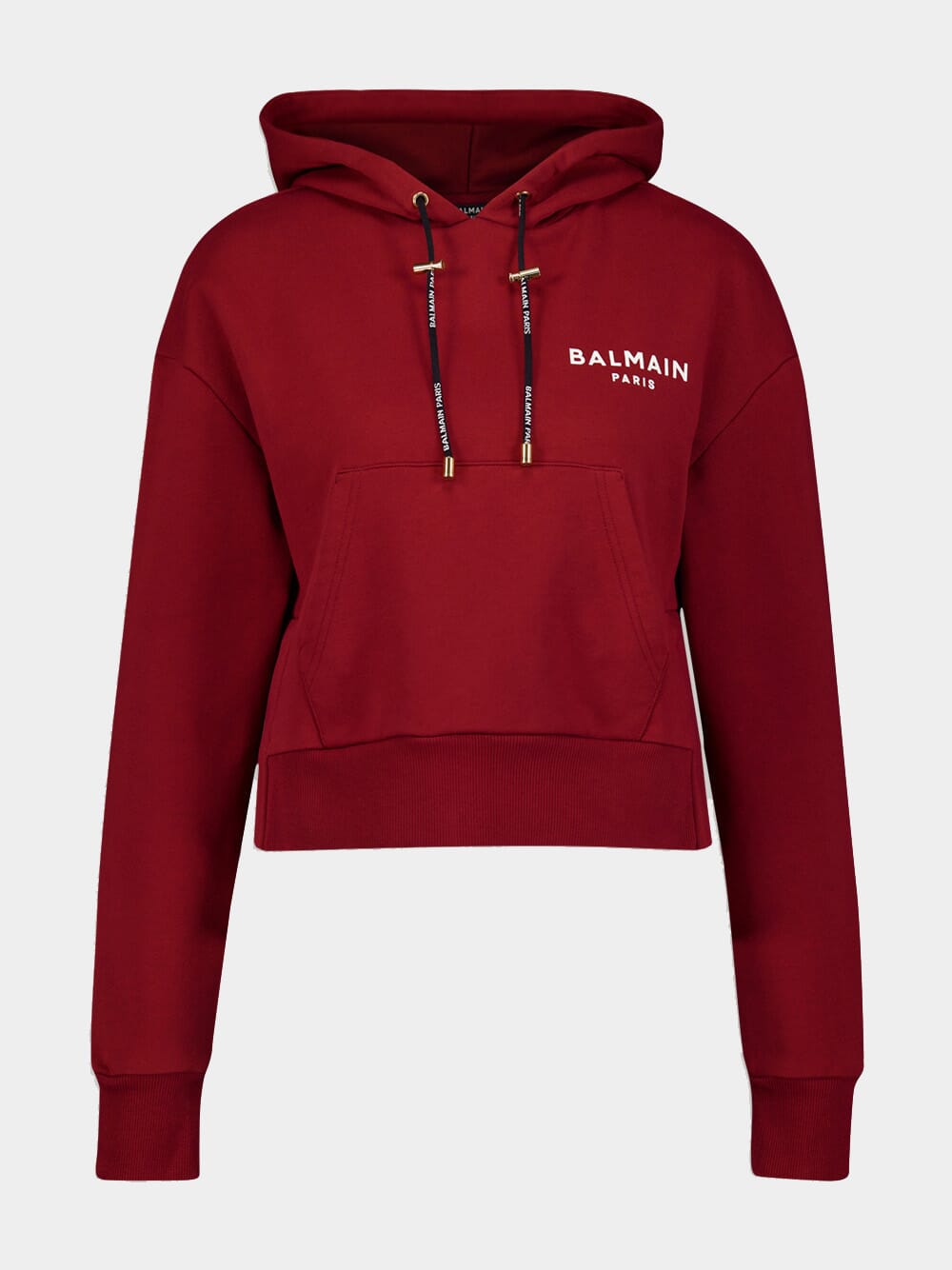 Flocked-Logo Cropped Hoodie, a seamless blend of style and comfort with a striking flocked logo. The logo-print drawstring and logo-tape detailing add an extra touch of uniqueness to this modern classic. With a cropped silhouette and classic hood, it features a front pouch pocket, long sleeves, and ribbed cuffs and hem for a chic yet cozy fit. Complete with side slits and a commitment to sustainability, as it's made from at least 50% organic materials.
