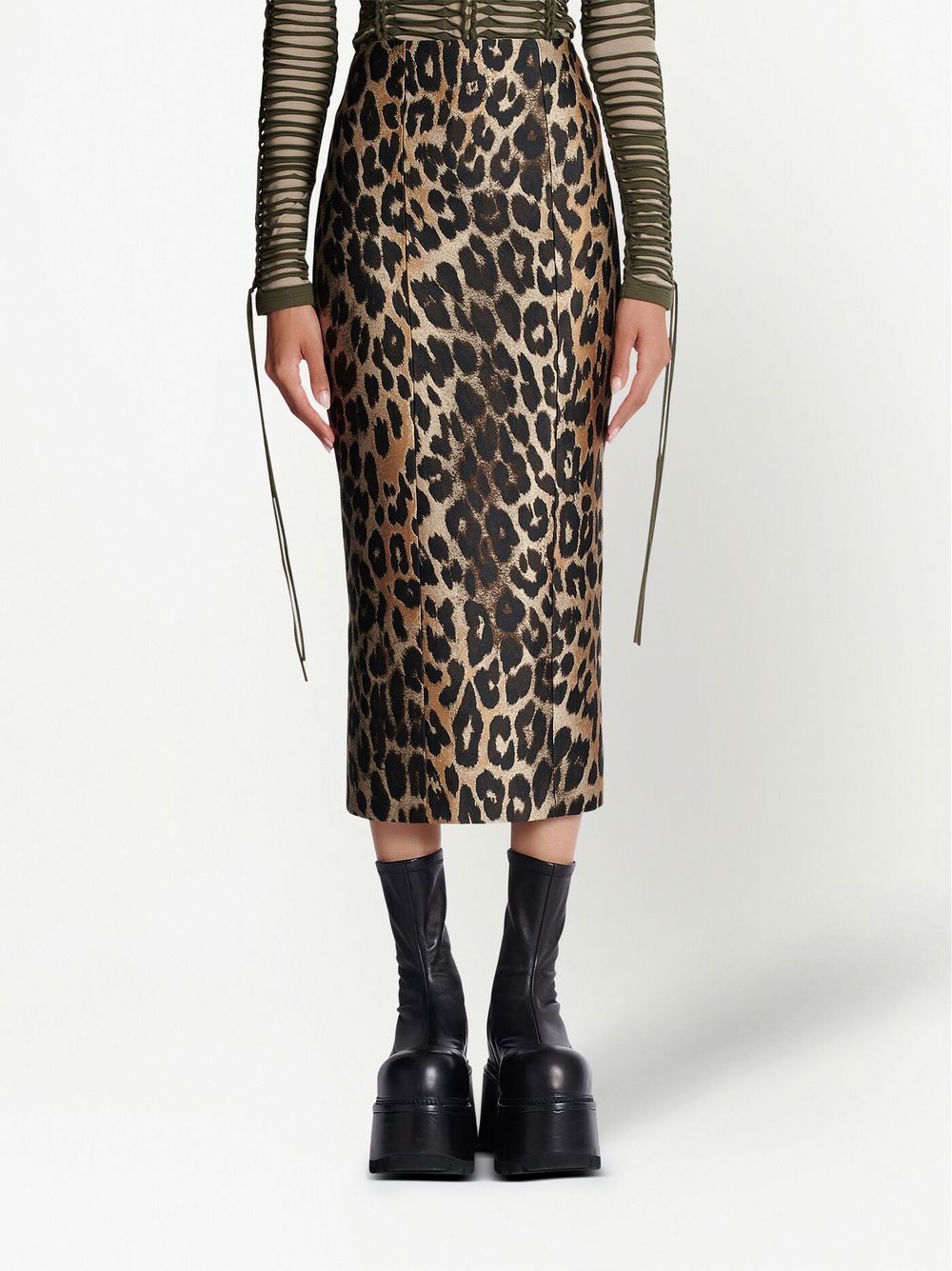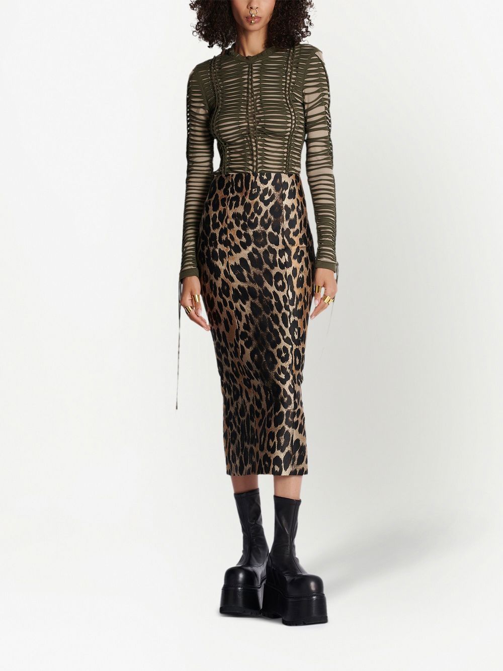Balmain Leopard jacquard pencil skirt featuring full-length back zip fastening and visible gold-coloured XXL zip with double slider.