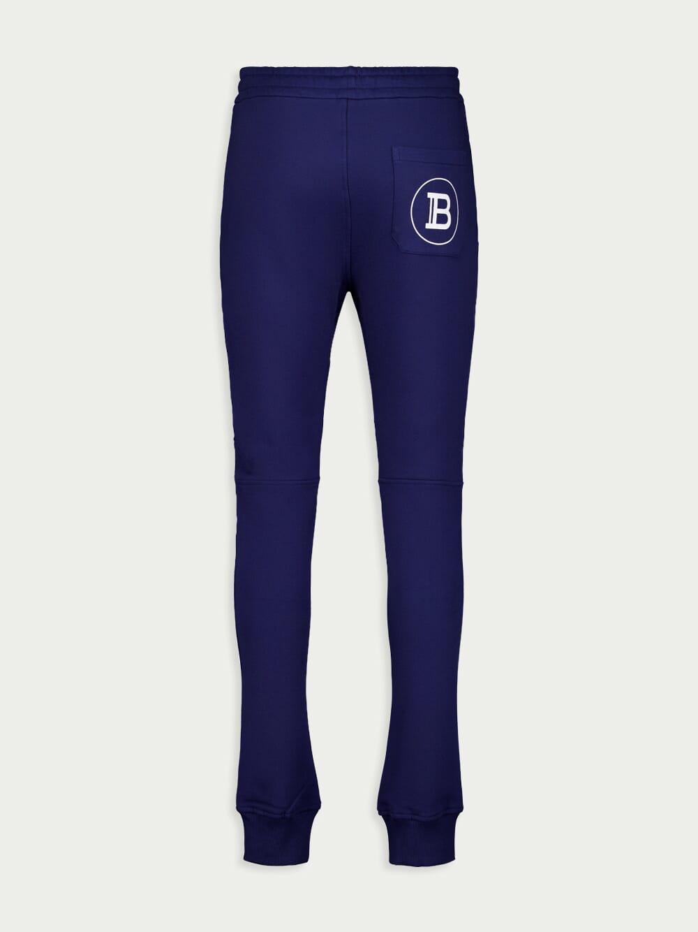 Logo-Print Ribbed Track Pants, crafted from soft jersey fleece, these pants offer a luxurious feel that's perfect for everyday wear. The logo print to the rear adds a touch of branded flair, while ribbed detailing creates a modern texture. The elasticated drawstring waistband ensures a secure fit, complemented by two side slash pockets for added functionality. Complete with a rear patch pocket, these track pants seamlessly combine fashion and practicality.