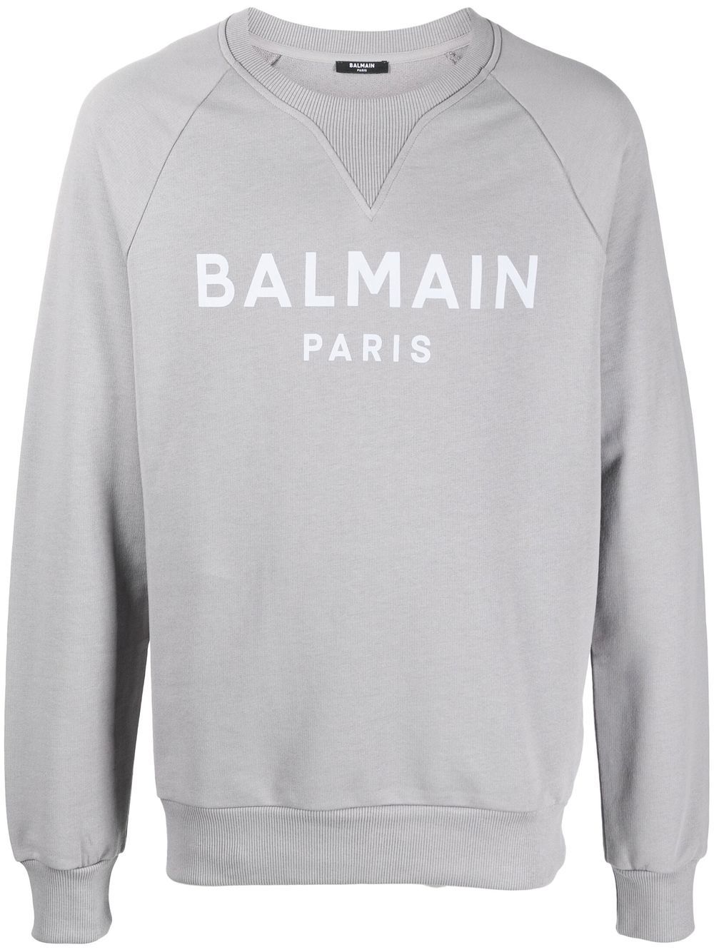 Balmain long sleeves grey cotton sweatshirt contrasting with logo print on front.