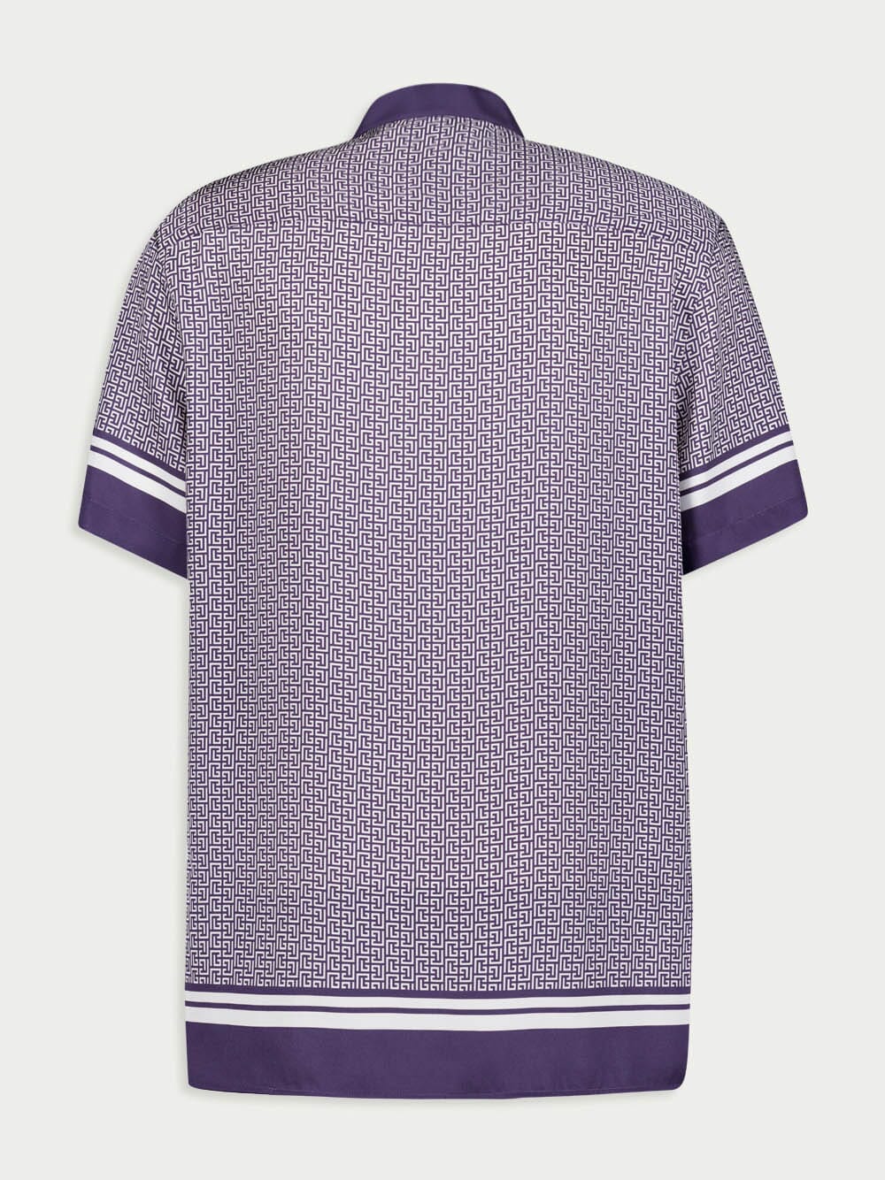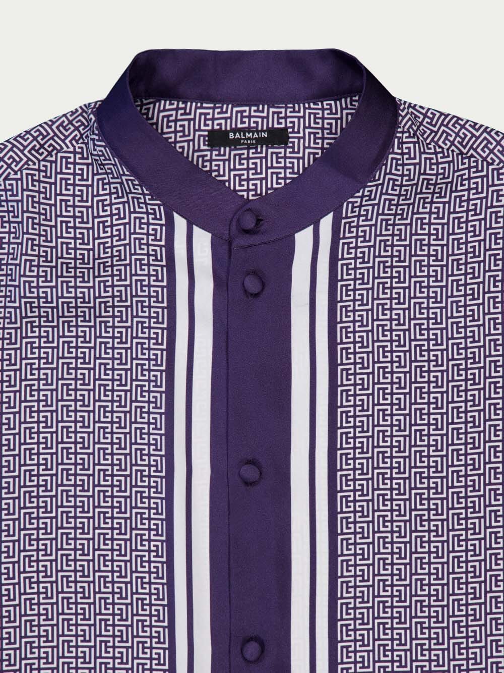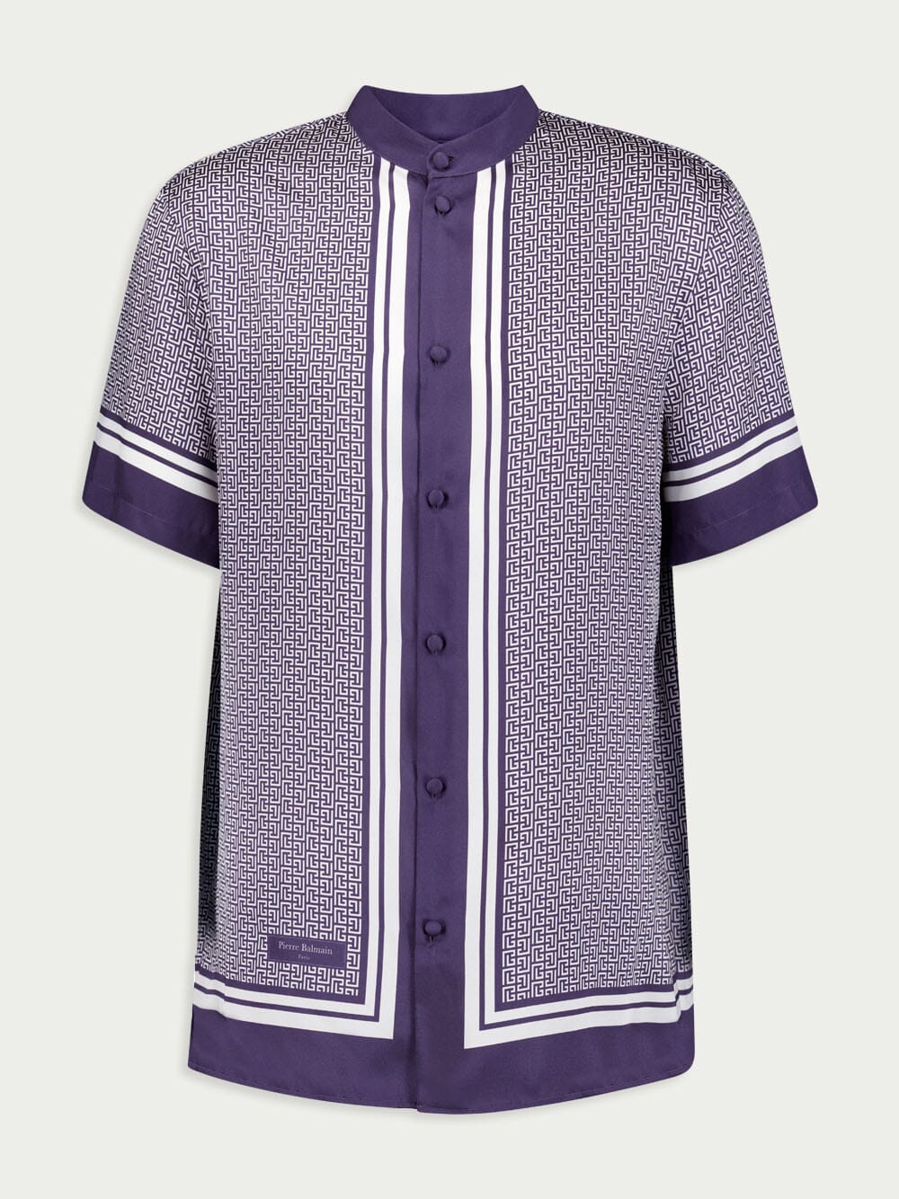 Monogrammed Scarf-Print Shirt, a perfect fusion of sophistication and style. Designed with a tight, straight fit, this shirt exudes contemporary elegance. The short sleeves and Mao collar lend a modern twist to a classic silhouette. Fastened with 7 buttons at the front, this shirt offers both convenience and a polished look. The contrasting plain edging adds a touch of refinement, elevating its overall appeal. Complete with the iconic Pierre Balmain label detail printed on the front, this shirt is a true symbol of luxury and craftsmanship.