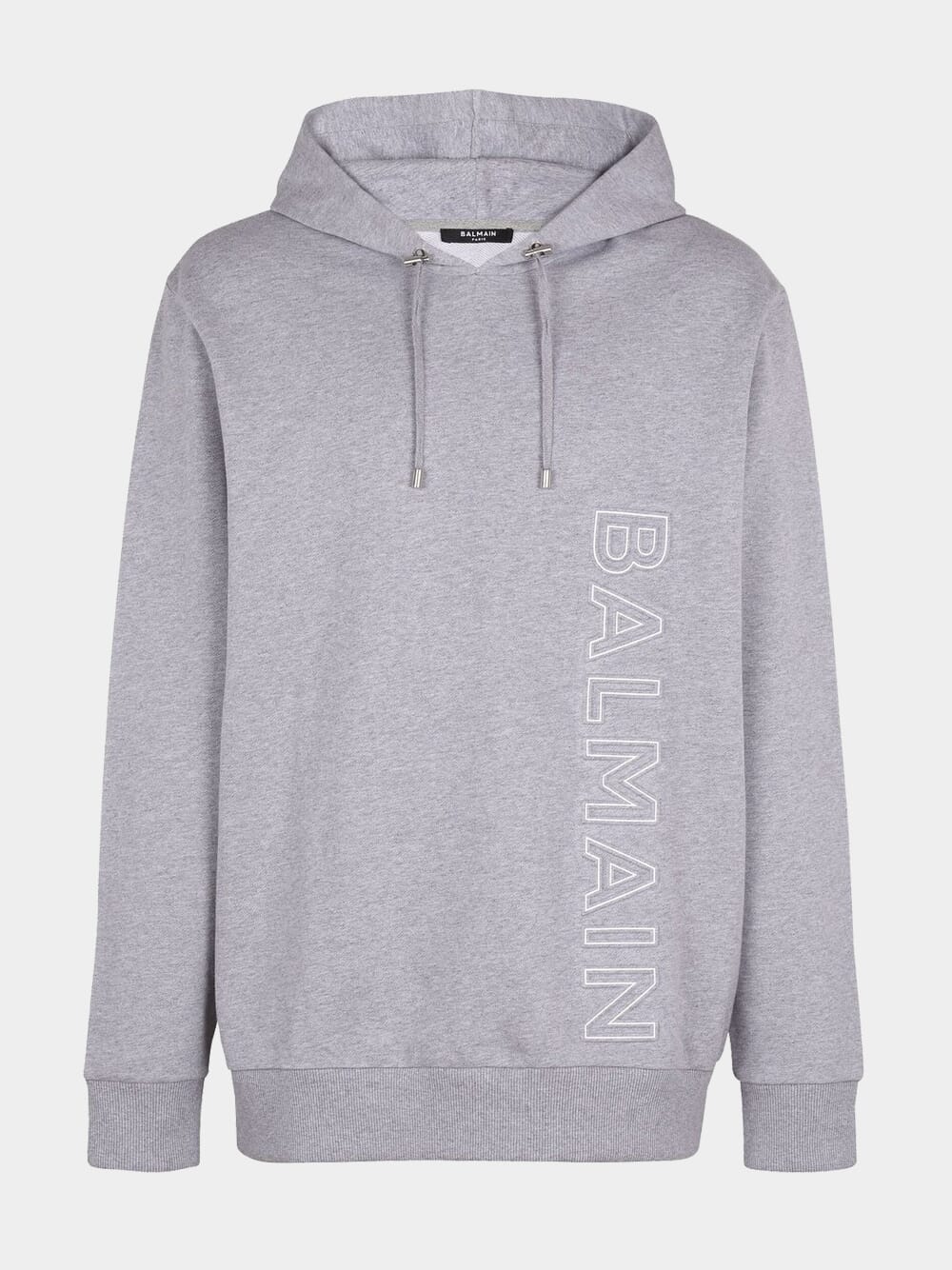 Balmain sweatshirt in eco-responsible cotton with reflective logo featuring ribbed cuffs and hem.