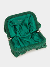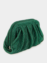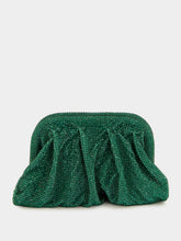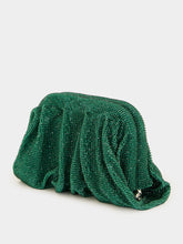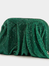 This exquisite clutch is a tribute to the goddess of love and beauty, designed to transform every woman into a modern Venus. The soft, draped form is meticulously adorned with a network of hand-sewn, sparkling green crystals, resembling the waves of the sea. Each detail is crafted with the precision of fine jewelry, making this clutch not just an accessory but a statement of elegance and grace. The interior reveals a practical denim clutch, perfect for carrying your essentials on an enchanting evening out.