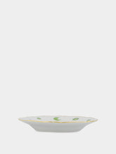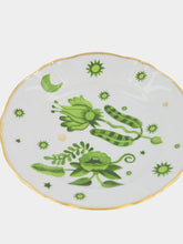 Bitossi La Tavola Scomposta white porcelain dessert plate with green design and golden trim.